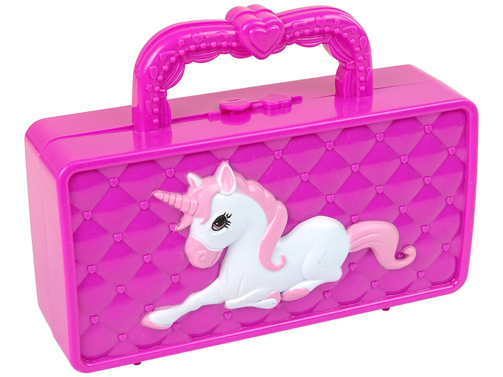 Kis kézitáska Unikornis Smink Szemhéjfestékek Fényesítők Egy kislány szeretné úgy érezni magát, mint az anyukája, egy bizonyos ponton elkezd érdeklődni a megjelenés, a smink és a divat iránt, itt az ideje az ilyen készleteknek. Most már egy kozmetikai készletet rejthet el, és egy gyönyörű rózsaszín palettában, unikornis motívummal rendszerezheti. A mesebeli lénnyel díszített kézitáska kiegészíti a kislány stílusát, segít neki elindítani egy sminkkalandot, amely formálja kézügyességét, precizitását, kreativitását és képzelőerejét. A csodálatosan kihajtható táska számos kincset tartalmaz, különféle szemhéjfestékeket és gyönyörű szájfényeket. Az első réteg akár 12 szemhéjfestéket is elrejthet. A második réteg 12 szájfényt, az utolsó réteg pedig gyönyörű csodákat tartalmaz, beleértve a körömlakkot, ecseteket, két virág alakú szájfényt és rúzst. A kislányok szuper jól fogják szórakozni a sminkelés titkaival. A hatást pedig a szív alakú tükörben ellenőrizhetik. A kozmetikumok biztonságosak és ártalmatlanok, parabénektől mentesek. A smink lemosásához egyszerűen töröld le egy papírzsebkendővel vagy vattakoronggal, szappannal és meleg vízzel. A szépségkészlet tartalma: - 12 szemhéjfesték - 12 szájfény - ecsetek - rúzs - körömlakk   Tükör méretei: 6 cm x 6 cm Összecsukott paletta méretei: 17 cm x 13 cm x 5 cm A paletta méretei kihajtva: 30 cm x 25 cm x 4 cm Csomag méretei: 38 cm x 36 cm x 6 cm A szépségkészlet az EN 71 szabvány szerint készült, és CE tanúsítvánnyal is rendelkezik. A készlet minden 5 év feletti kis hercegnő számára alkalmas.