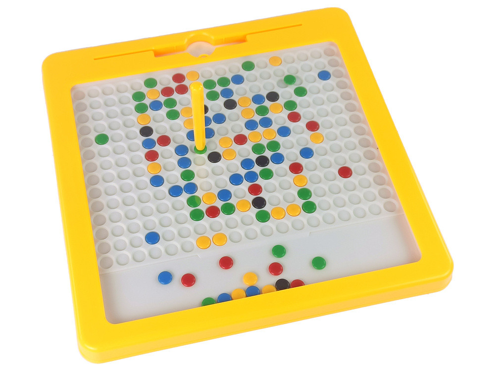 Mágneses tábla 100 sárga gyöngy A sárga mágneses tábla gyöngyökkel egy olyan termék, amely nemcsak szórakozást nyújt, hanem számos fontos készséget is fejleszt a legkisebbekben. Ez a sárga mágneses tábla egyedülálló kreatív és interaktív lehetőségei miatt. A készlet akár 100 színes gyöngyöt is tartalmaz gyönyörű piros, sárga, zöld, kék és fekete árnyalatokban. De ez nem minden! A táblán és a gyöngyökön kívül egy speciális mágneses tollat ​​is kapsz, amellyel a gyöngyöket a táblán bárhová mozgathatod. A móka abban rejlik, hogy a gyöngyöket a táblán saját ötleteid szerint rendezd el, vagy 20 különböző kirakós javaslatot használsz, amelyek a készletben találhatók. Ez nemcsak fantasztikus szórakozás, hanem nagyszerű lehetőség a kézügyesség és a kéz-szem koordináció fejlesztésére is gyermekednél. A tábla mérete 31,5 cm x 31,5 cm x 2,5 cm, így otthoni használatra is alkalmas, de tökéletes utazáshoz vagy kirándulásokhoz is. Kompakt méretének köszönhetően bárhová magaddal viheted, így gyermekednek mindenhol szórakozást és tanulást biztosít. Ez a készlet nemcsak nagyszerű módja annak, hogy fejlessze gyermeke képességeit, hanem fantasztikus alkalom arra is, hogy együtt töltsék az időt és családi kötelékeket építsenek. A gyöngyök összeillesztése a táblára felejthetetlen pillanatokat teremt, tele nevetéssel és tanulással. A tábla méretei: 31,5cm x 31,5cm x 2,5cm A csomag mérete: 33cm x 33cm x 3cm CE tanúsítvánnyal rendelkezik és megfelel az EN71 szabványnak. A játék 3 év feletti gyermekek számára készült.