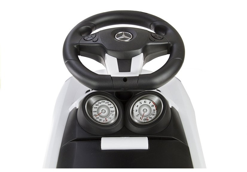 Mercedes-Benz SLS AMG Rider Fehér Lepd meg a kicsidet, és add át neki a saját Mercedes-Benz kulcsait. A bemutatott joyride a népszerű Mercedes-Benz márka legendás járművének mintájára készült. Érdemes szem előtt tartani, hogy a masszív és mindenekelőtt precízen gyártott felszerelés az alapja a kicsi biztonságának, ezért arra biztatunk, hogy válasszon egy fehér, felismerhető logóval ellátott babakocsit. A játékautó nemcsak fejleszti gyermeked autózás iránti szeretetét, hanem kellemes módon ösztönzi a fizikai aktivitásra is. A bemutatott fehér mini járművet a legapróbb részletekre is odafigyelve tervezték, ami nagyban hozzájárul a fiatal sofőr pozitív érzéseihez. A masszív, mégis rendkívül könnyű és egyszerű konstrukció évekig garantálja a sikeres játékot. Az autó áramvonalas, éles szélek nélküli formája és a legmagasabb minőségű anyagokból történő gyártása növeli a sérülésekkel szembeni ellenállását. Az egyszemélyes jármű könnyű, így a gyermek a lábával képes elrugaszkodni a talajtól anélkül, hogy nagy mennyiségű energiát veszítene. A termék elején található kormánykerék lehetővé teszi a gyermek számára, hogy gyorsan gondolkodjon és eldöntse, merre menjen. Ezzel a kisautóval való játék nemcsak szórakoztató lesz gyermeke számára, hanem pozitív hatással lesz fejlődésére és egészségére is. A mozgás és a móka kombinációja biztosan órákra leköti gyermekét. Ez a gyerekjármű a szülők számára is nagy segítség, mivel megkönnyíti a hosszabb séták megszervezését és lebonyolítását a környéken, vagy a kirándulások lebonyolítását. A játék Mercedes ülése felemelhető, és az alatta lévő hely felhasználható a kicsi kedvenc játékainak tárolására. A háttámla megakadályozza, hogy a kisgyermek hátradőljön. A fehér járgány méretei: - magasság kormánykerékkel: 38 cm, - hosszúság: 60 cm, - szélesség: 22 cm. Csomag méretei: 67 cm x 30 cm x 26 cm. Súly csomagolással: 3,49 kg.