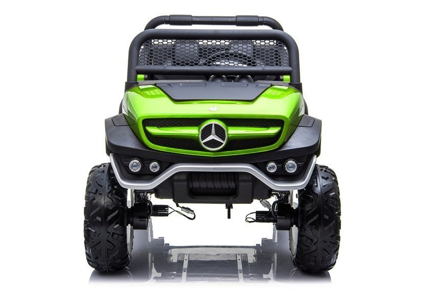 Mercedes Unimog Zöld 4x4 Akkumulátoros Utasautó. Gyermeke már kiskorától kezdve a vezetésről álmodik? Ezt lehetővé teheti, ha egy zöld, terepjáró akkumulátoros autót ajándékoz neki. Hagyja, hogy gyermeke megtapasztalja a felelősséget és a függetlenséget, amely olyan felszerelések használatával jár, amelyekhez nem szokott hozzá. Ne feledje, a masszív felépítésű felszerelés elengedhetetlen – ezért válasszon magabiztosan 4x4-es Mercedes Unimogot. A zöld Mercedes Unimogot a legapróbb részletekre is odafigyelve tervezték, ami pozitívan befolyásolja a fiatal raliversenyző élményét. A tartós és robusztus konstrukció, valamint a kiváló minőségű anyagok évekig tartó kiváló szórakozást és sérülésállóságot biztosítanak. A modell vonzerejét fokozzák a nyitható ajtók és a lengéscsillapítók, amelyekre szerelték, így az egyenetlen és göröngyös terepen való vezetés sokkal élvezetesebb és kalandosabb. Ez a gyermek akkumulátoros autó minden bizonnyal megfelel a fiatal autórajongók elvárásainak. Miért? Érdemes megjegyezni a realisztikus kialakítását, a 4x45 W-os motorját és a 12V14Ah-s akkumulátorát. Egy akkumulátoros autó nem jelenti azt, hogy gyermeked teljes szabadsággal vezetheti – a távirányítóval mindig szabályozhatod a sebességét. Ez a modell 3 éves kortól ajánlott gyermekek számára, de szülői felügyelet mellett még a fiatalabb sofőrök is használhatják. A zöld terepjáró CE tanúsítvánnyal rendelkezik, ami biztosítja a biztonságos használatot. Dobd fel a családi kirándulásokat egy fiatal autórajongóval a volán mögött.