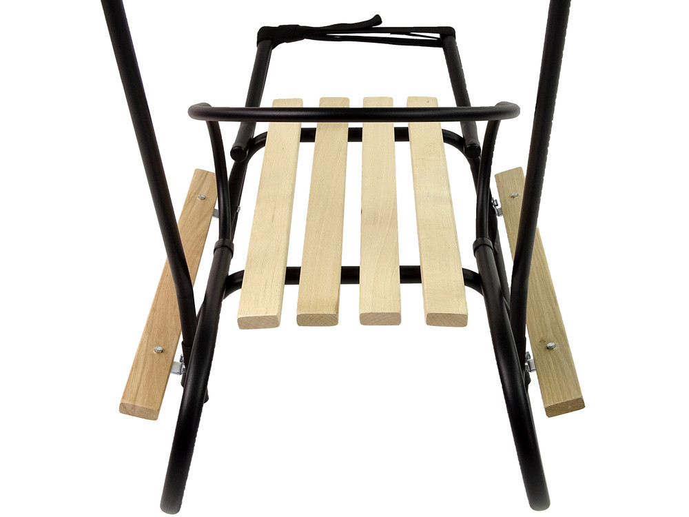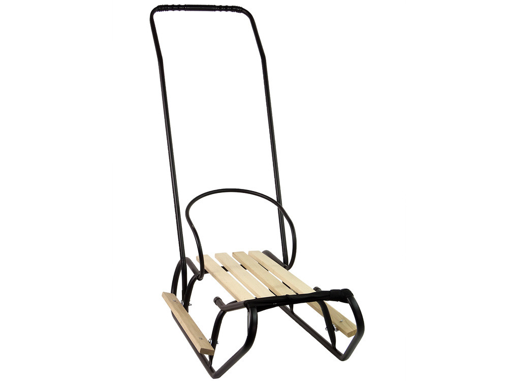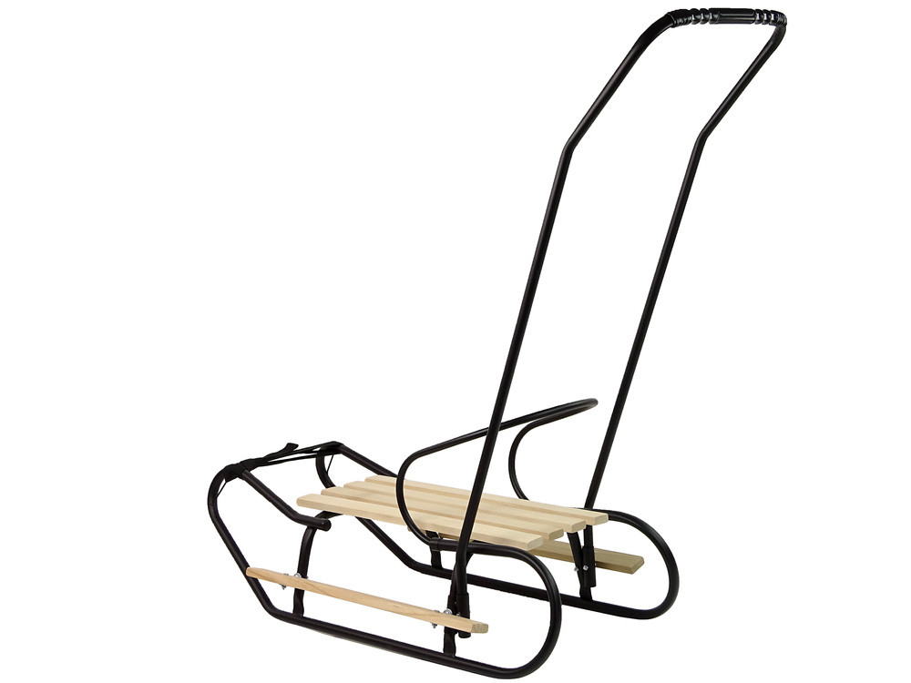 Fém szánkó tolókarral, háttámla pánt, fekete