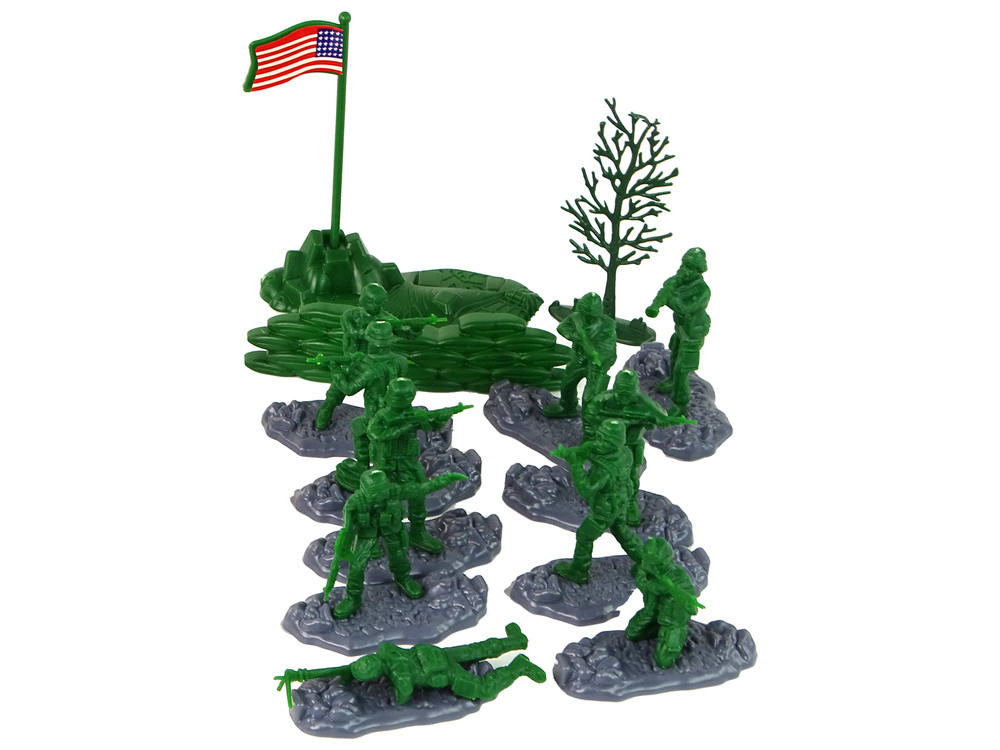 Katonai készlet 48 elem   Vezesd be gyermekedet a katonai kalandok dinamikus világába. Ez a lenyűgöző figurakészlet kiegészítőkkel elrepíti a kicsiket akciódús jelenetekbe, ahol a parancsnok vagy a katona szerepének eljátszása nagyszerű szórakozássá válik. A figurák különféle katona pózokat ábrázolnak, így végtelen számú forgatókönyvet és akciót hozhatsz létre. Különböző pozíciókban, az állótól a guggolásig, készen állnak stratégiai műveletek végrehajtására. Két színben kaphatók: zöld és barna. A gyerekek szerepük és taktikájuk, valamint a színkülönbségek alapján alkothatnak csapatokat. A figurák gondosan kidolgozottak, a legapróbb részletekre is odafigyelve, ami hiteles és izgalmas megjelenést kölcsönöz nekik. A készlet olyan kiegészítőket is tartalmaz, mint: piramisok, falak, kövek, fák és zászlók, amelyeknek köszönhetően a szórakozás még érdekesebbé válik. Gyermekeid szokatlan forgatókönyveket alkothatnak, és úgy érezhetik magukat, mintha a csatatéren lennének, falak vagy fák mögé bújva. A játék tartós műanyagból készült, ami garantálja a tartósságot. A csavarozatlan csomagolás, amelyben találhatók, praktikus megoldást kínál a készlet tárolására. Ez egy nagyszerű lehetőség arra, hogy beindítsd gyermeked fantáziáját és epikus történeteket alkoss egy miniatűr katonai műveletek világában. A változatos pózokkal, színekkel és akciólehetőségekkel ez a játék órákig tartó lenyűgöző játékot és kreativitást garantál.   A készlet tartalma: - katonafigurák - 2 piramis - 2 fal - 2 fa - 2 zászló - 20 kő   A figurák méretei: Magasság: kb. 4 cm   A csomag mérete: Kerület: 28 cm Magasság: 15 cm   CE tanúsítvánnyal rendelkezik és megfelel az EN71 szabványnak. A játék 3 év feletti gyermekek számára készült.