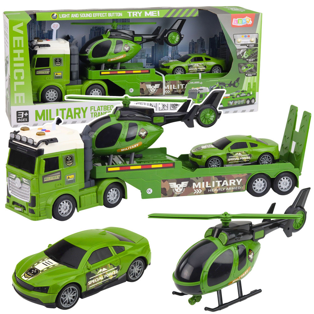 Katonai szett Katonai teherautó Vontató Autó Helikopter Fények Hang