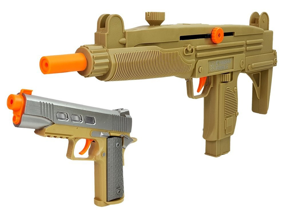 Katonai szett Fegyver Maszk Távcső Mellény Iránytű A katonai játékok, katonai tárgyak általában katonák figurái, amelyek csatateret utánoznak, vagy sörétes puskák. Az akciófilmek inspirálják a játékkészítőket, és egyre népszerűbbek a kicsik körében. Egyre több olyan játék van, amely funkcionalitásával és változatosságával vonzza a figyelmet. Készletünk sok katonai kütyü rajongóját el fogja kápráztatni, és kiegészíti jelmezüket a jelmezes bálon. A kiegészítőknek köszönhetően gyermeke felszerelkezhet egy golyóálló mellénnyel, egy iránytűvel és egy pisztollyal, és csatába indulhat. A géppisztoly, amely a készlet fő eleme, speciális feszítővel rendelkezik, amely a lövészetet szimulálja. Egy sor lövés után a fegyvert újra kell tölteni. A távcső lehetővé teszi, hogy távolról is észrevegye az ellenséget. Minden kiegészítő kiváló minőségű műanyagból készült, ami garantálja, hogy sokáig szolgálni fogja gyermekét. A teljes készlet világoszöld színvilágú. Egyetlen ellenség sem fog elmenekülni! A kisgyermek fantáziája biztosan fejlődik. A készletben található számos kiegészítő pedig minden kis harcosnak tetszeni fog. Tökéletes lesz egy farsangi bálra vagy egy előadásra. Felejthetetlen pillanatokat élhet át. A készlet elemei: - nagy pisztoly - revolver - tok - maszk - mellény - távcső - síp - óra ​​- iránytű - jelvény   A készlet kiválasztott elemeinek méretei: - nagy pisztoly: 38 cm x 17 cm x 4 cm - kis pisztoly: 20 cm x 13 cm x 4 cm - maszk: 15 cm x 16 cm x 6 cm - mellény: 30 cm x 33 cm x 3 cm - távcső: 10 cm x 9 cm x 4 cm Doboz méretei: 68 cm x 38,5 cm x 8 cm A játékok 3 év feletti gyermekek számára készültek. A készlet CE tanúsítvánnyal rendelkezik és megfelel az EN 71 szabványnak. A készlet kartondobozba van csomagolva, így ideális ajándéknak.