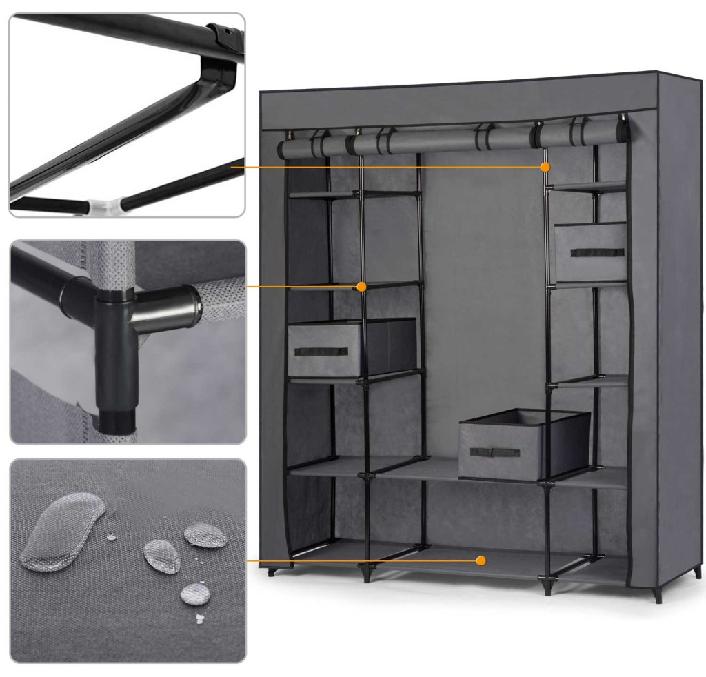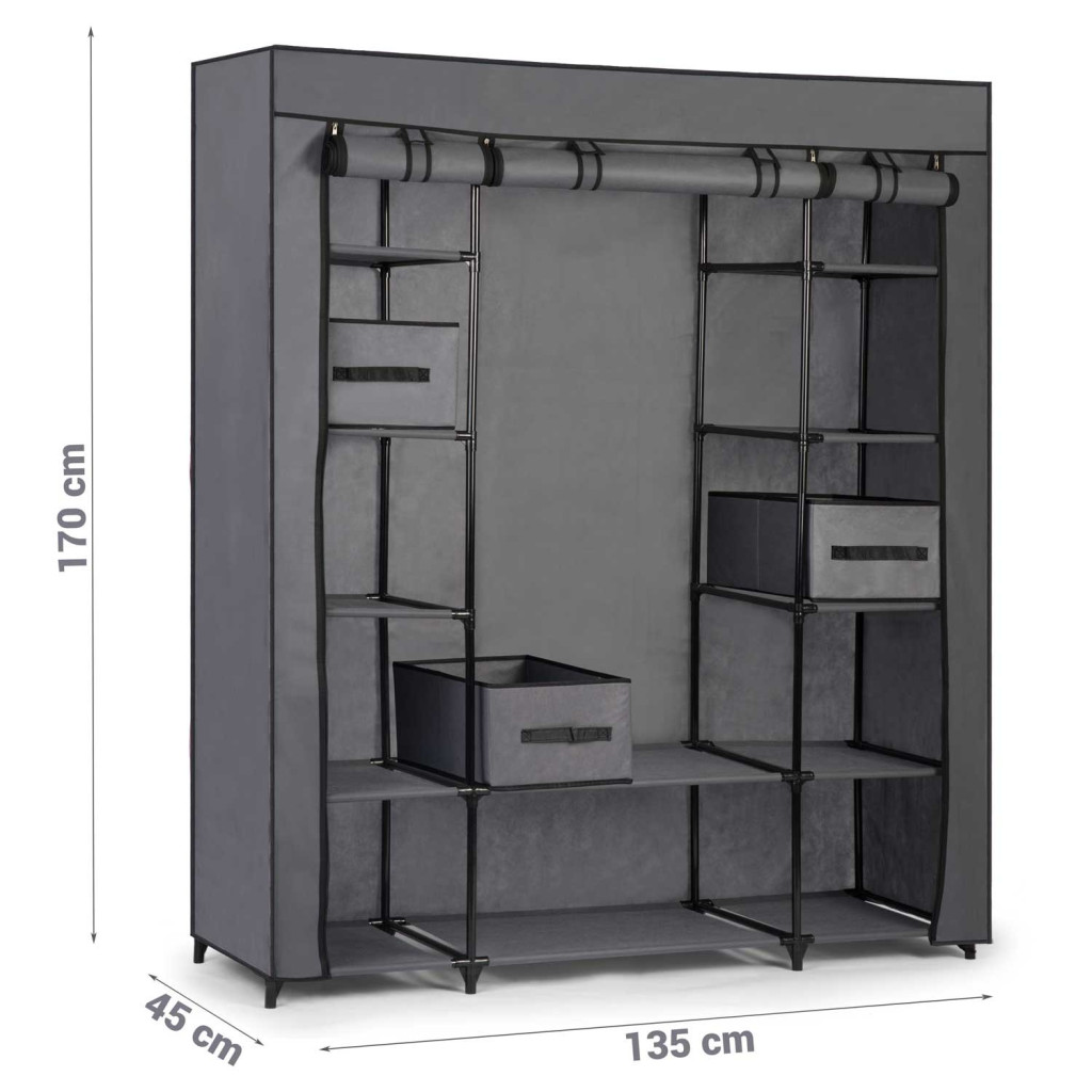 Massido textil szekrény fiókokkal ⭐⭐⭐⭐⭐ A tartósság és a praktikusság érdekében Méretek: 45 x 135 x 170 cm Főbb jellemzői: 12 polc megnövekedett terhelési kapacitással, 3 fiók akasztók bot, acélkeret, 3 független teret a saját ajtóival, Négy cipzár bezárása, Nagyon egyszerű és intuitív összeszerelés. Magas osztályú anyagokból készül Acélkeret tartós csatlakozókkal, PP műanyagból, Vízálló anyag, amelyet a nagy tartósság jellemez. Műszaki adatok: Méretek: 45 x 135 x 170 cm, Polcok száma: 12, Fiókok száma: 3, Rúd a fogasokhoz: 1.