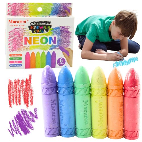 Neon színű krétatáblára való járdakréta-készlet, 6 darabos