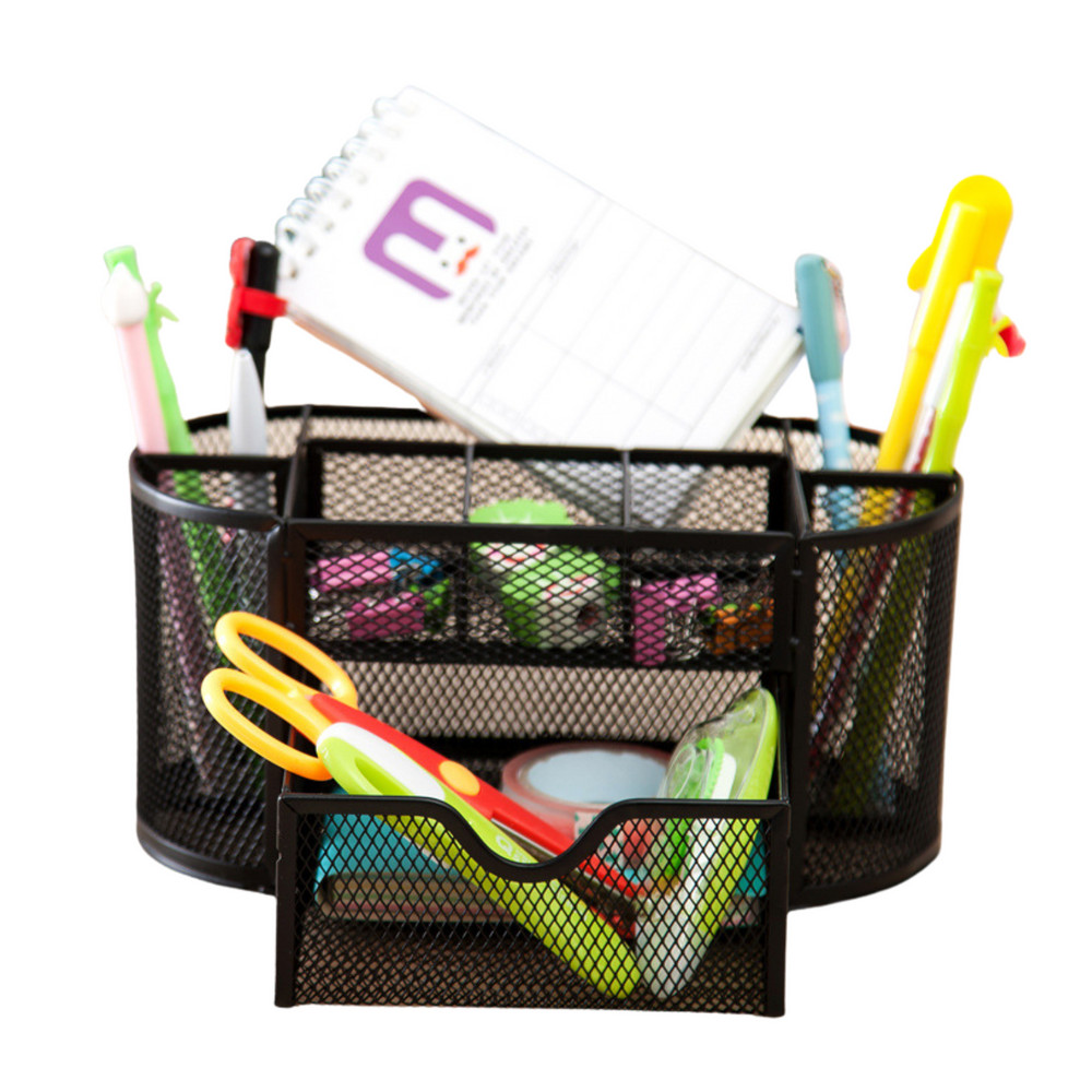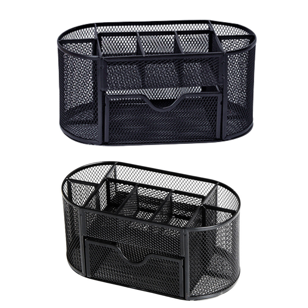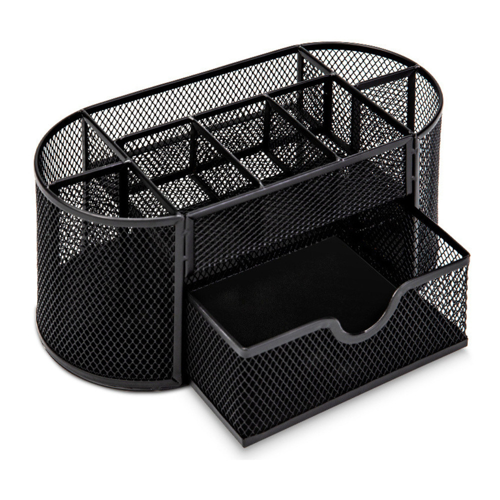 Irodaszer-rendező tároló, fém, fekete, modern asztali rendezőA fém irodaszer-rendező praktikus és stílusos megoldás azok számára, akik értékelik a rendet és az esztétikát a munkahelyen. Könnyű, lakkozott fémből készült, a modern dizájnt ötvözi a funkcionalitással. Elegáns fekete színe bármilyen irodához illik, rendet és eleganciát visz abba. A rendező előnyei:️ Tágasság és funkcionalitás - A tágas rekeszek lehetővé teszik az irodaszerek, például tollak, ceruzák, gemkapcsok, öntapadós jegyzetek vagy egyéb apróságok kényelmes tárolását. Ennek köszönhetően minden kéznél van, és a leggyakrabban használt dolgok könnyen elérhetők.️ Stílusos megjelenés - Az elegáns fekete szín és hálós szerkezet modern és professzionális megjelenést kölcsönöz a szervezőnek, amely tökéletesen illeszkedik bármilyen irodai stílushoz, stílusos kiegészítője a munkaterületnek.️ Tartósság és stabilitás - A masszív fémszerkezet nagy tartósságot és stabilitást biztosít, aminek köszönhetően a szervező hosszú ideig szolgálni fog.️ Kompakt méretek - 21 cm x 10,5 cm x 11 cm méreteivel a szervező bármilyen asztalra elfér, nem foglal túl sok helyet, miközben kényelmes tárolást biztosít a kiegészítők számára.️ CE tanúsítvány - A termék megfelel a biztonsági és minőségi előírásoknak, ami biztosítja a teljesen biztonságos használatát. Specifikáció: Anyag: Fém, fekete lakkal bevont hálós szerkezet Méretek: 21 cm (szélesség) x 10,5 cm (mélység) x 11 cm (magasság) Rekeszek száma: 6 tágas rekesz irodai kellékek tárolására Tanúsítvány: CE - a termék megfelel a biztonsági követelményeknek Alkalmazás: Ideális irodába, dolgozószobába és más olyan helyiségekbe, ahol az asztali rendszerezés kulcsfontosságú. Miért válassza ezt a szervezőt?️ Elegáns dizájn – A szervező modern megjelenése bármilyen munkaterületre illik, stílust és eleganciát visz abba.️ Funkcionalitás – A 6 rekesz könnyű hozzáférést biztosít a legfontosabb irodai kellékekhez, tágasságuk pedig lehetővé teszi még több apró tárgy tárolását.️ Tartósság és stabilitás – Fémhálóból készült, a szervező ellenáll a sérüléseknek, masszív szerkezete pedig hosszú élettartamot biztosít.️ Kényelmes tárolás – Kompakt méreteinek köszönhetően a szervező bármilyen asztalra elfér, így helyet takarít meg, miközben lehetővé teszi a tér rendszerezését. Az irodaszer-szervező praktikus és elegáns kiegészítője az irodának, amely segít a munkaterület rendszerezésében. A fémszerkezet és a fekete szín stílust és rendet visz az irodájába, miközben nagy tartósságot biztosít.