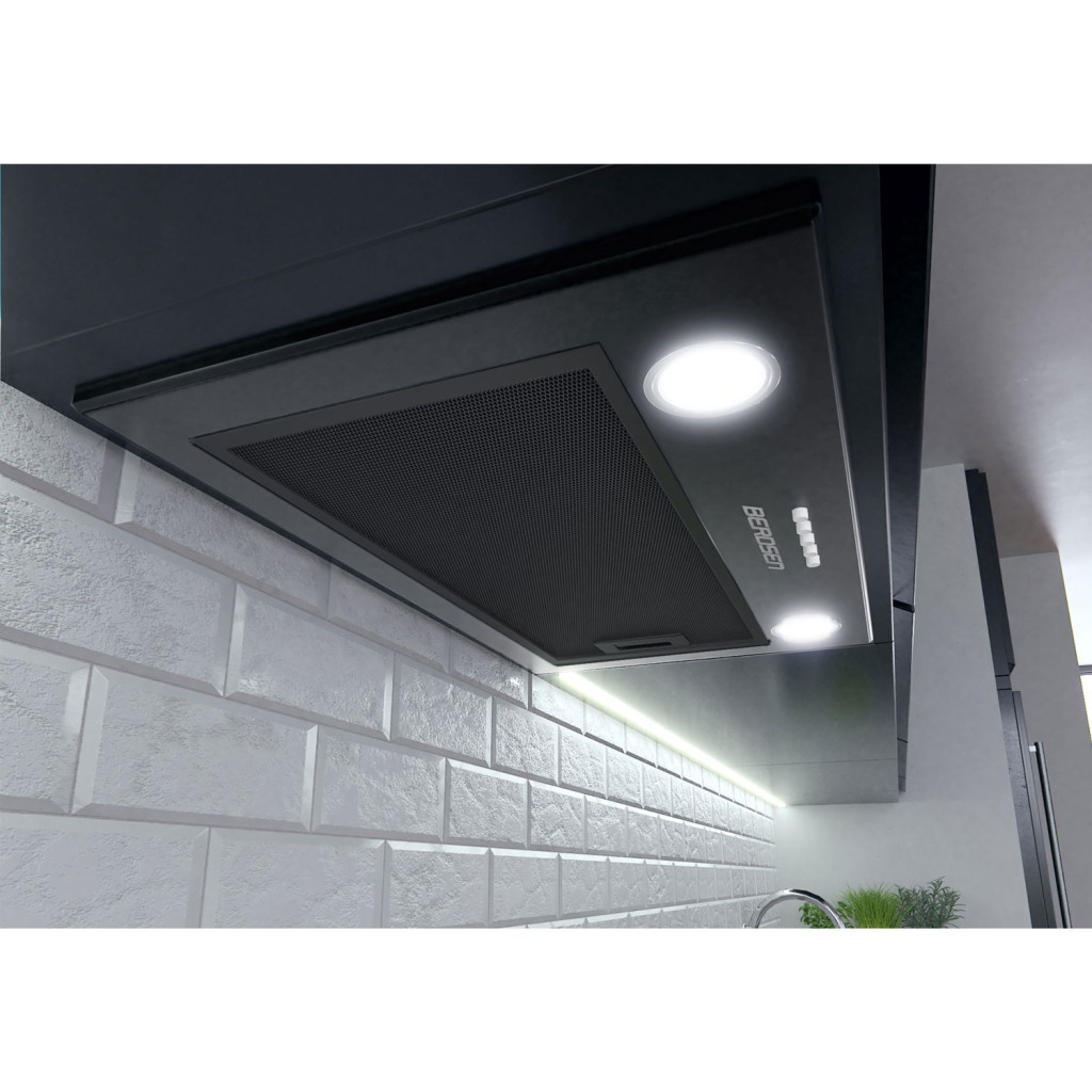 Beépíthető páraelszívó 120 W , 380 m3/h , 51,8 cm , 2X2W Led , fekete Berdsen