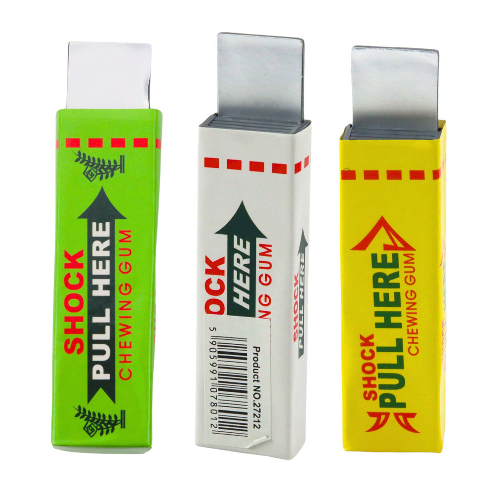RÁGÓGUMI – EGY ELEKTROMOS KÜZÜ, AMI ELEKTROMOS SOKKAL AD BEÁLLÍTÁST Ez a látszólag hétköznapi rágógumi-csomag valójában egy okos tréfaeszköz. Úgy néz ki, mint egy igazi rágógumi-csomag, de egy szórakoztató meglepetést rejt. Aki kihúzza a kiálló "rágógumit", egy enyhe áramütést kap. A meglepetéshatás garantált! Az áramütés teljesen ártalmatlan, mégis elég erős ahhoz, hogy meglepje a gyanútlan "jutalmazót". Realisztikus megjelenésének köszönhetően ez a kütyü tökéletes tréfa, ajándék vagy partivicc. A termék tartós ABS műanyagból készült, és kompakt méretének köszönhetően bármilyen zsebben elfér. Megjegyzés: Ez a termék 14 év feletti személyek számára készült. Kerülje a használatát gyermekek, idősek, terhes nők és egészségügyi problémákkal (pl. szívbetegség) küzdő személyek esetében. A nagy kiszerelés 24 darabot tartalmaz. Külön kapható. A szín véletlenszerűen kerülendő. MŰSZAKI ADATOK: Típus: Rágógumi - áramütéskeltő kütyü Hatás: enyhe áramütés (egészségre biztonságos) Anyag: ABS Színek: véletlenszerűen küldve (pl. zöld, sárga) Méretek: kb. 9,5 x 2,2 x 1,3 cm Célja: kütyü, tréfa, parti vicc A SZETT TARTALMA: 1x Rágógumi - elektromos sokkoló kütyü