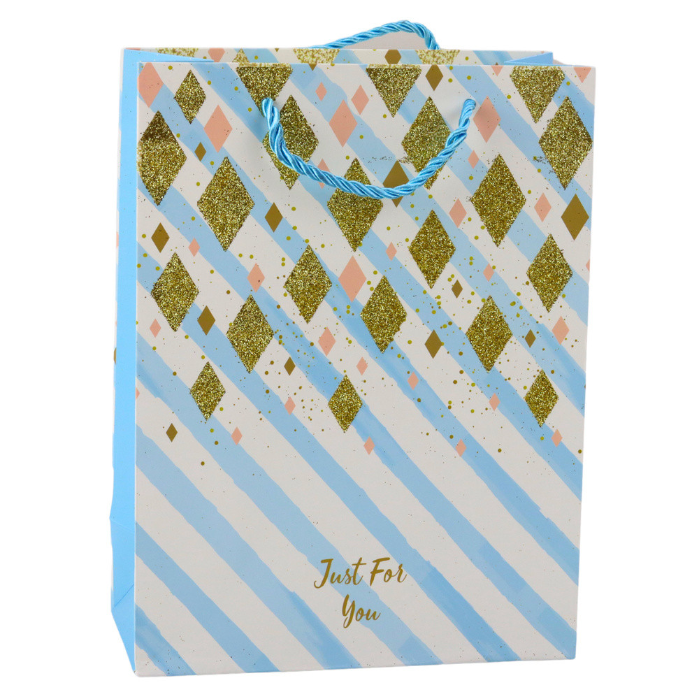 Papír ajándéktáska kék rózsaszín csillámporral 23 x 18 x 10,5 cm