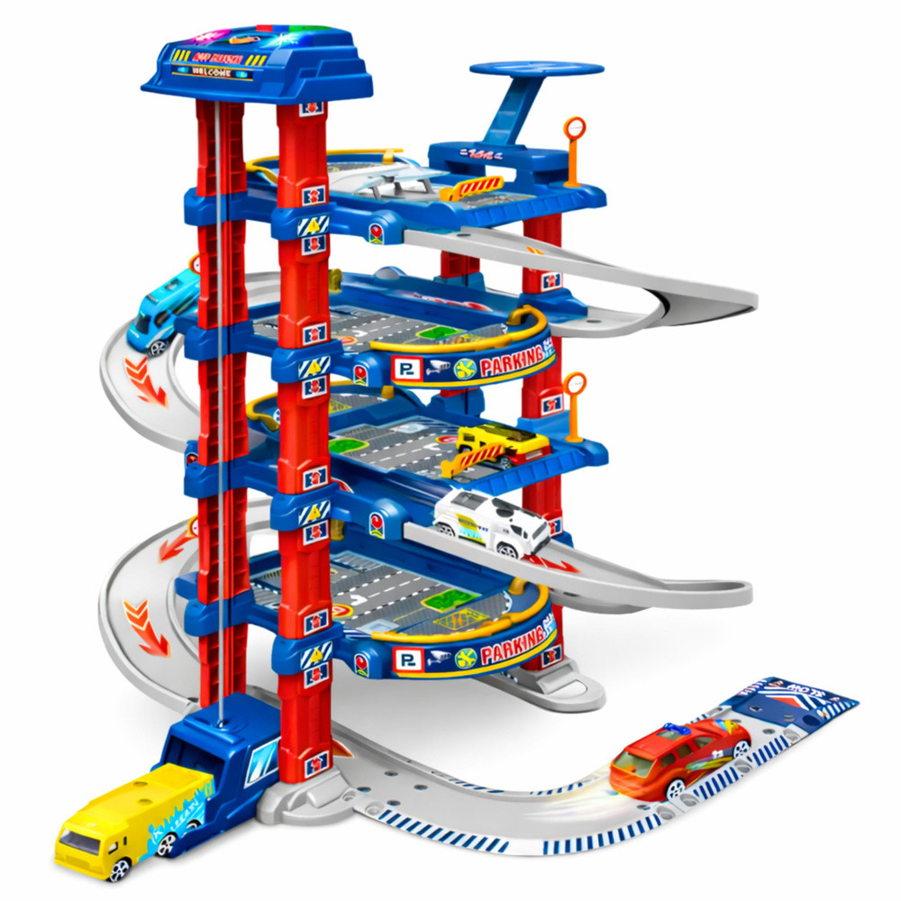 PARKOLÓGÁZS JÁTÉK ELEKTROMOS LIFTTEL ÉS AUTÓCSÚSZDÁVALEz a nagyméretű, elektromos lifttel és csúszdával ellátott parkológarázs egy átfogó, interaktív játék, amelyet olyan gyerekeknek terveztek, akik szeretnek autókkal játszani és valósághű úti jeleneteket eljátszani. A többszintes szerkezet dinamikus játékot tesz lehetővé, amelynek során a gyerekek irányítják a járműforgalmat, használják az elektromos liftet és a parkoló legfelső emeleteiről vezető csúszdát.A készlet fénypontja az elektromos lift, amely lehetővé teszi a gyerekek számára, hogy autókat szállítsanak a garázs felső szintjeire. A lift egyszerű és intuitív kezelése lehetővé teszi a gyerekek számára, hogy önállóan irányítsák a járműforgalmat és megtervezzék következő lépéseiket. Ezenkívül a parkoló csúszdával, helikopter-leszállóhellyel, közlekedési táblákkal és egy padlószőnyeggel van felszerelve, amely valósághű városi környezetet teremt.A parkolóval való játék fejleszti a finommotoros készségeket, a kéz-szem koordinációt, a logikus gondolkodást és a térbeli érzékelést. A gyerekek saját játékforgatókönyveket hozhatnak létre, miközben megtanulják a szervezést, a tervezést és a közlekedési szabályokat. A masszív konstrukció és a tartós anyagok biztonságos és tartós használatot biztosítanak. A teljes készlet esztétikus csomagolásban található, így tökéletes ajándék minden autórajongó számára. SPECIFIKÁCIÓK: Játéktípus: ParkolóházJátéktípus: Interaktív játék elektromos emelővelAnyag: MűanyagFunkciók: Elektromos emelő, csúszda, autópályaTovábbi jellemzők: Helikopter leszállópálya, közlekedési táblákParkoló méretei: 66 x 49 x 33 cmPadlószőnyeg méretei: 58 x 78 cmAutó méretei: kb. 7 x 3 x 2,5 cmCsomag méretei: 50,5 x 38 x 8,5 cmTápegység: 3 x 1,5 V-os elemA KÉSZLET TARTALMA:Többszintes parkolóházElektromos emelőAutócsúszdaPadlószőnyeg2 fém autóHelikopter7 közlekedési táblaDekoratív matricákKép Használati utasításEredeti csomagolás