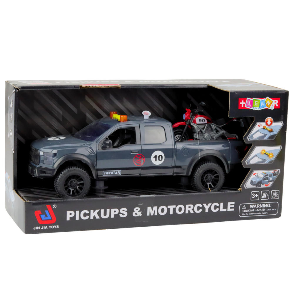MOTORKERÉKPÁR FÉNYEKKEL, HANGOKKAL, NYITÓ AJTÓKKAL Egy nagyméretű pickup modell motorkerékpárral ideális játék azoknak a gyerekeknek, akik szeretik a terepjárókat, a valósághű részleteket és az interaktív játékot. A járművet a legfiatalabb autórajongók igényeit szem előtt tartva tervezték, számos olyan funkciót kínálva, amelyek gazdagítják a szórakozást és serkentik a képzeletet. Az autó nyitható ajtókkal és hátsó csomagtartó fedéllel rendelkezik, ami megkönnyíti a motorkerékpár berakodását, és hitelességet kölcsönöz az egész szerkezetnek. A motorkerékpár platójáról való be- és kirakodásának lehetősége lehetővé teszi akciójelenetek, mentőakciók vagy terepversenyek létrehozását. Ezenkívül a jármű fény- és hangeffektusokkal van felszerelve, amelyeket a tetőn található gombok megnyomásával lehet aktiválni. Ezek a funkciók növelik a realizmust, és aktív játékba vonják a gyermeket, ösztönözve a szerepjátékot és a saját kalandok megalkotását. A pickup simán mozog különböző felületeken, nagy, terepjáró kerekei pedig jól működnek otthoni és kültéri körülmények között is. Az egész szerkezet kiváló minőségű, tartós és biztonságos anyagokból készült, amelyek megfelelnek a játékbiztonsági szabványoknak. A masszív konstrukció és a gondos kidolgozás ellenállóvá teszi a játékot az intenzív használattal szemben. A jármű és a motorkerékpár realisztikus megjelenése játékra ösztönzi a gyerekeket, és támogatja a kreativitás és a kézügyesség fejlődését. Ideális ajándékötlet minden kis motoros járművek és terepjárós akciók rajongójának. SPECIFIKÁCIÓ: Típus: játékautó motorkerékpárral Funkciók: fények, hangok, ajtók és csomagtérajtó nyitása Tápellátás: 2 x 1,5 V AAA elem (tartozék) Autó méretei: 33,5 x 13 x 12 cm Csomag méretei: 41,5 x 20,5 x 16 cm Alkalmazás: tematikus játék, képzeletfejlesztés, szerepjáték Anyag: műanyag SZETT TARTALMA: 1 x pickup 1 x motorkerékpár 2 x AAA elem 1 x doboz