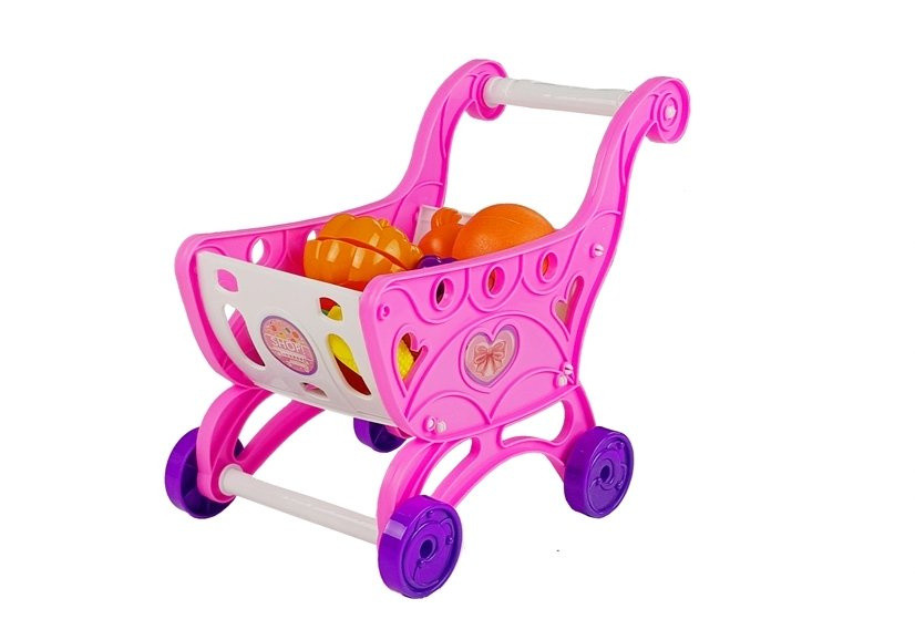 Rózsaszín pénztárgép kiegészítőkkel ellátott kocsi