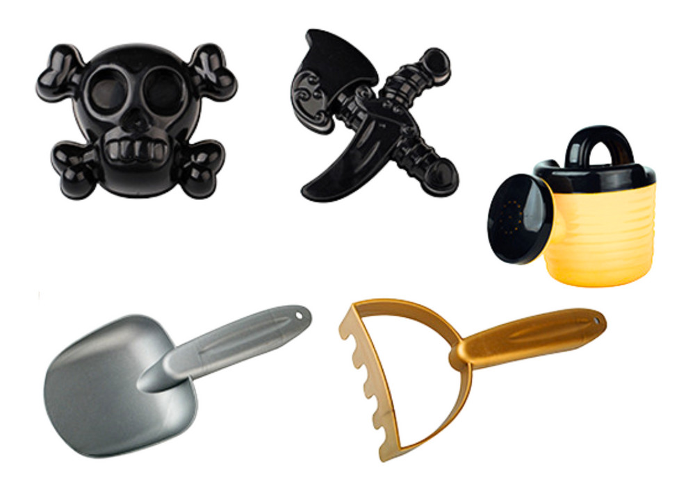 Kalóz homokkészlet, vödör, öntözőkanna, szűrő, 6 darabos készlet.