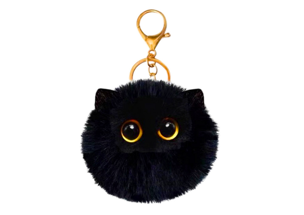 Plüss macska kulcstartó dísz szemek fülek fekete