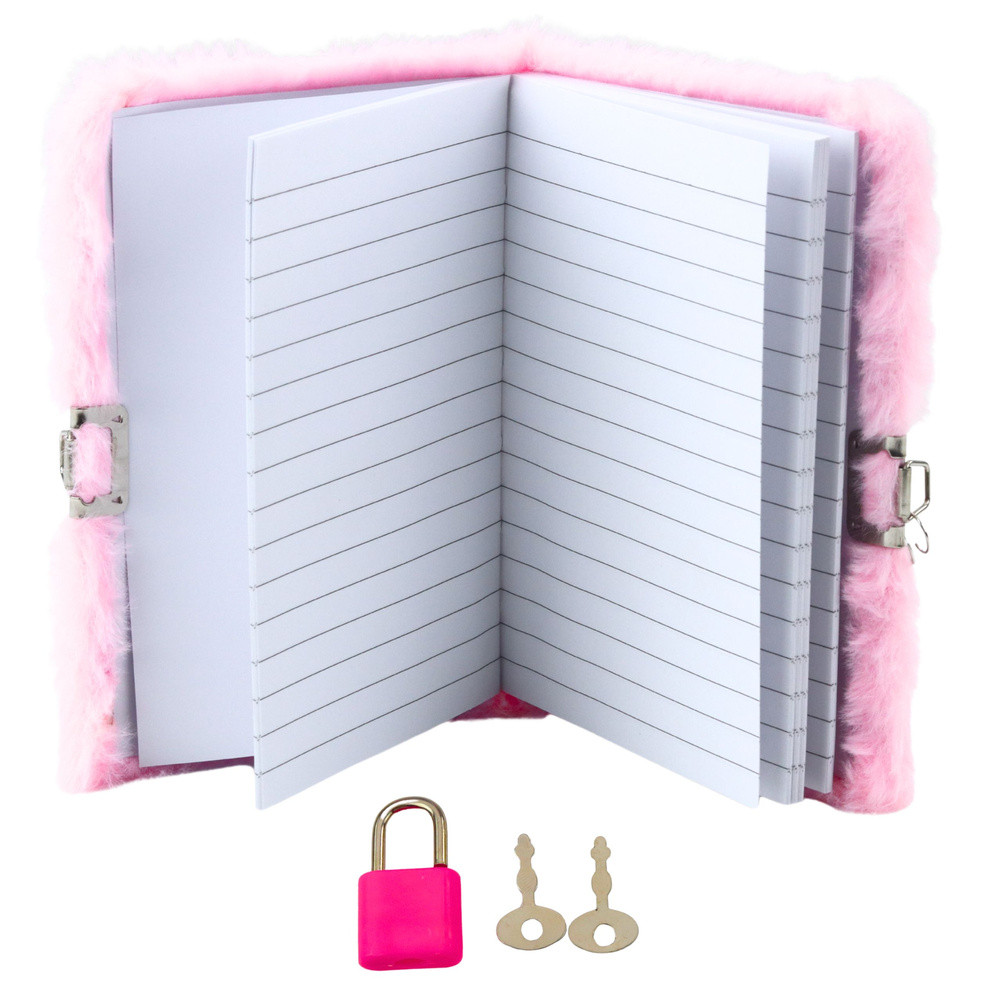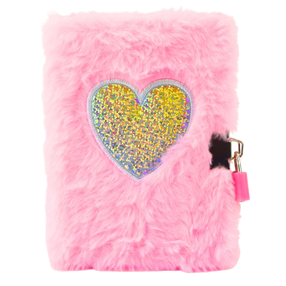 Plüss Napló Lakattal és 2 Kulccsal Szív alakú Rózsaszín A6 80 Lap
