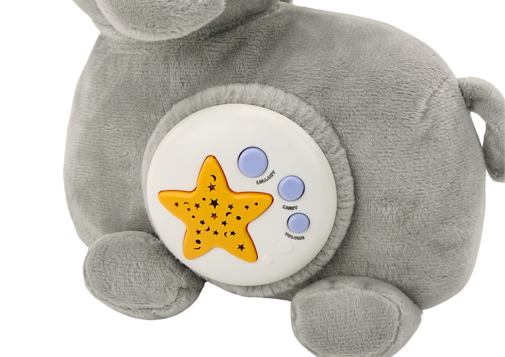Plüss Elefánt Projektor Alvó Elefánt Szürke Ölelnivaló Játék Csillagok Dallamok