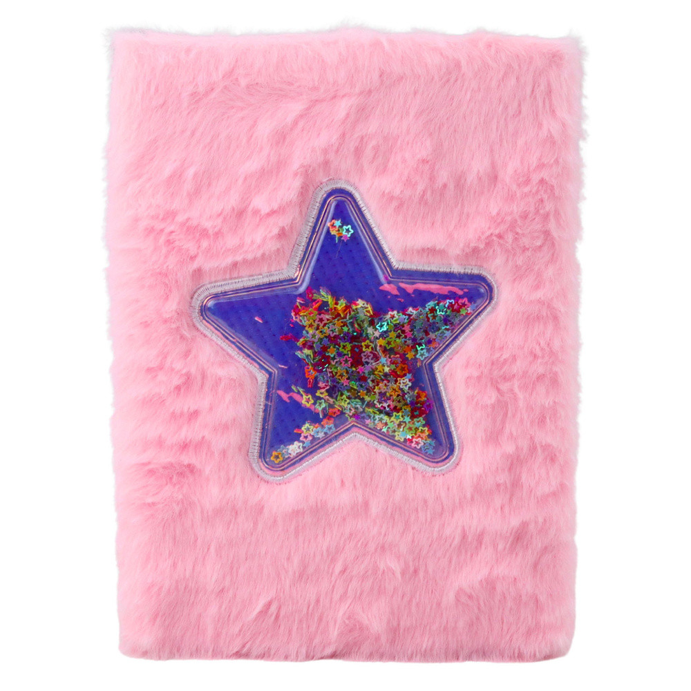 Plüss jegyzetfüzet bélelt csillag konfetti rózsaszín A5 80 lapos