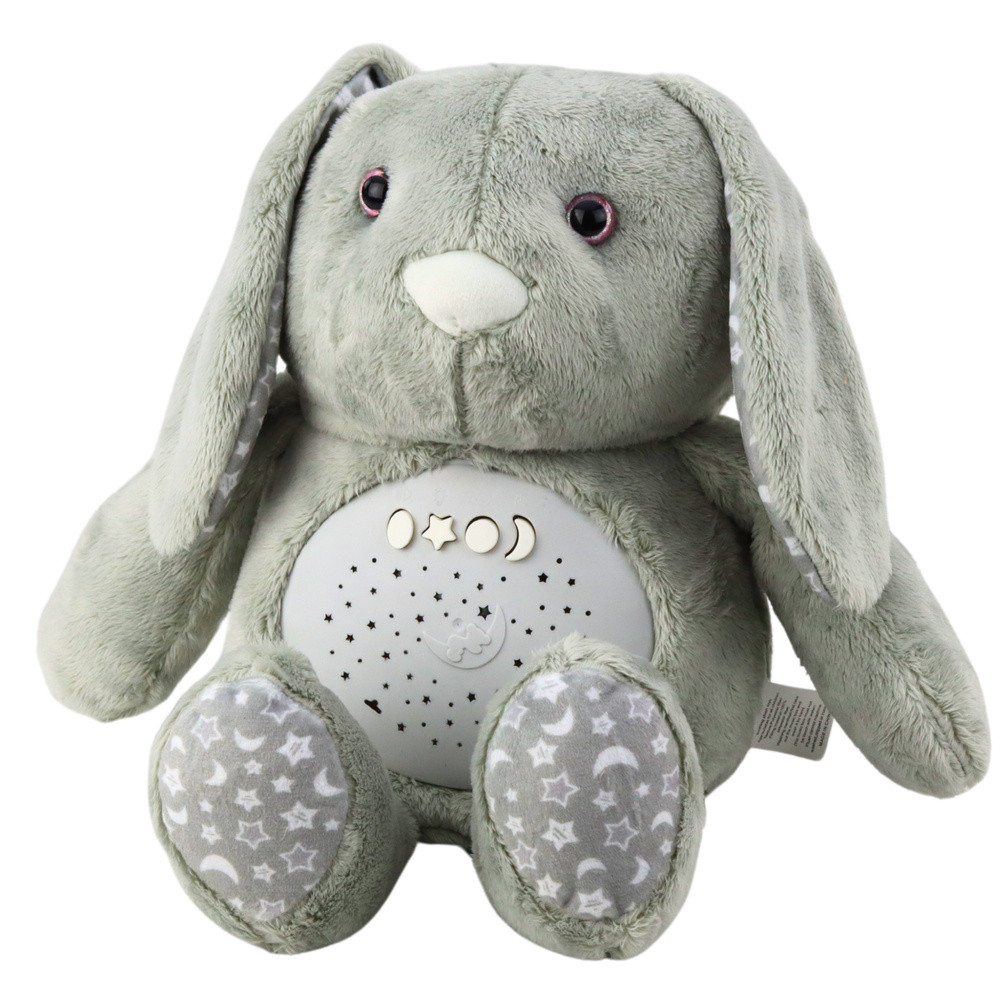 Plüss Nyuszi Alvó Ölelnivaló Játék Projektor Hang Zaj Szürke