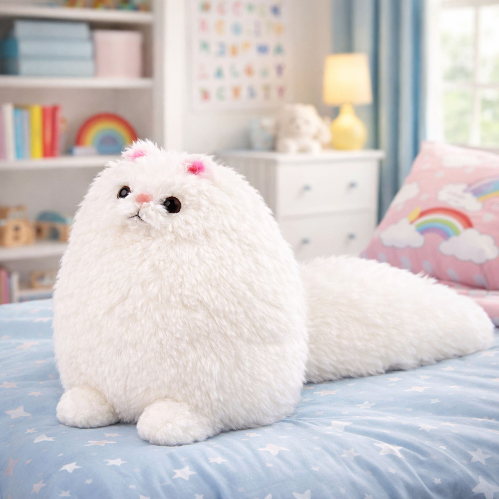 HOSSZÚ FARKOJÚ PLÜSSMACSKA - NAGY PUHA JÁTÉKEz a hosszú farkú plüssmacska egy kivételesen puha és bájos plüssjáték, amely tökéletes ölelnivaló játék gyerekeknek és szobadísz. Puha, tapintású plüssből készült, ösztönzi az ölelkezést, és kényelmet biztosít pihenés vagy játék közben. A plüssmacska kerek, bolyhos formájú és nagyon hosszú farokkal rendelkezik, ami jellegzetes megjelenést kölcsönöz neki. A finom szőrzet hihetetlenül puhává és kellemes tapintásúvá teszi a játékot. A gondosan kidolgozott részletek, mint például a szemek, a pofa és a füleken és az orron lévő rózsaszín elemek, egyedi bájt kölcsönöznek neki. Ez a plüssmacska sokféle célra használható. Használható ölelnivaló játékként lefekvéshez, játékként mindennapi játékhoz, és dekorációként a gyerekszobában. Nagy méretének köszönhetően kényelmes párnaként is használható pihenéshez. Tökéletes ajándék gyerekeknek és a plüssjáték-kedvelőknek. Ez a plüssállat tökéletes születésnapokra, ünnepekre, vagy akár egy kedves ajándéknak is. SPECIFIKÁCIÓK: Terméktípus: Plüssjáték Téma: Macska Anyag: Puha plüss és szintetikus töltet Szín: Fehér Textúra: Puha, bolyhos szőrzet Macska méretei: kb. 30 x 30 x 20 cm Farok méretei: kb. 35 x 14 x 8 cm Célja: Ölelnivaló játék, szobadekoráció A KÉSZLET TARTALMA: Plüss macska hosszú farokkal