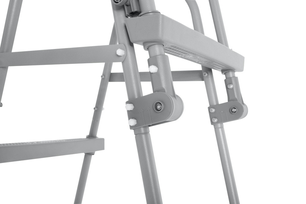 Double-sided ladder that facilitates both entering and exiting the pool. It has metal frames that are resistant to corrosion. A distinctive feature of the ladder is that it is very easy to install and fits 107 cm high pools. It is resistant to damage and heavy loads, it also has non-slip steps, so you can feel safe. The ladder is distinguished by removable steps, thanks to which your child cannot get into the pool when you are away.