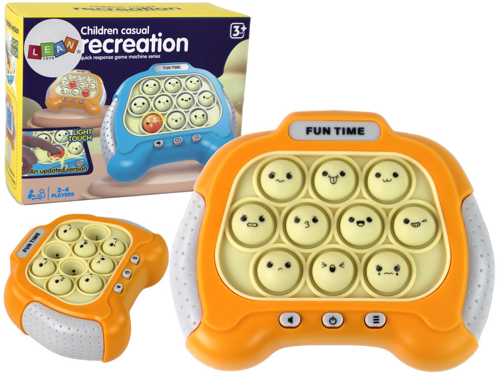 Pop It elemmel működő szenzoros játékkonzol fényei sárgán hangzanak