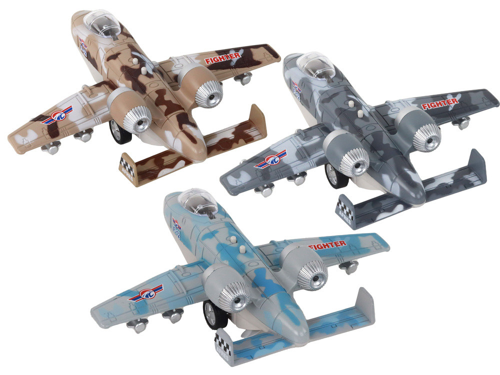 Motoros vadászrepülőgép Moro katonai sugárhajtású Minden repülőgép hű másolata egy katonai gépnek, és felejthetetlen élményt nyújt a gyerekeknek játék közben. A repülőgépek fény- és hanghatásokkal rendelkeznek, amelyek utánozzák a katonai gépek jellegzetes hangjait, realizmust adva és serkentve a gyermekek képzeletét. A repülőgép meghajtása lehetővé teszi a nagyon gyors mozgást, ami további izgalmat és dinamikát biztosít a játék során. Ennek a funkciónak köszönhetően a gyerekek szimulálhatják a katonai repülőgépek mozgásával kapcsolatos különféle helyzeteket és cselekvéseket, miközben fejlesztik a motoros készségeket. A készlet hat repülőgépet tartalmaz három színváltozatban: Kék-szürke - tökéletes az égi repülések szimulálására. Szürke - a katonai technológia klasszikus színe. Bézs és barna - tökéletesen álcázza magát a különböző terepviszonyok között. A "Moro katonai repülőgép" játék nemcsak a játék örömét nyújtja a gyerekeknek, hanem segít fejleszteni a képzeletet, a motoros készségeket és a motoros koordinációt is. A masszív kidolgozás és a vonzó dizájn sok órányi izgalmas szórakozást nyújt a kis felfedezőknek. A repülőgép méretei: 16 cm x 15 cm x 5 cm A repülőgépet két AG13 1,5 V-os elem táplálja, amelyek a játék közepébe vannak beépítve. A játék 3 év feletti gyermekek számára készült. CE minősítéssel rendelkezik és megfelel az EN71 szabványnak.