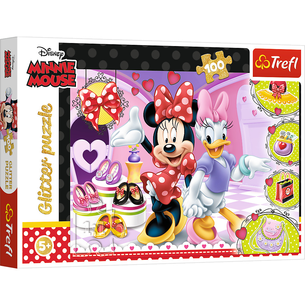 100 darabos kirakó. Minnie egér és csillámpor Trefl 14820 Egy 100 darabból álló kirakó, amelyet kifejezetten Minnie egér rajongóknak terveztek. A kirakó finom, arany csillámporral van bevonva, aminek köszönhetően mind a csomagolás, mind az egyes elemek gyönyörűen csillognak és lenyűgöző benyomást keltenek. A kirakó csodálatos, csillogó dísze lesz a gyerekszobának. A kirakó összerakása után egy 410x278 mm méretű kép jön létre.
