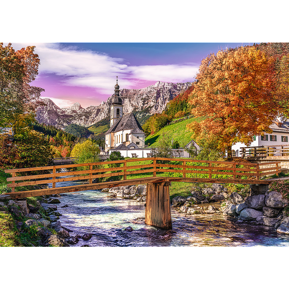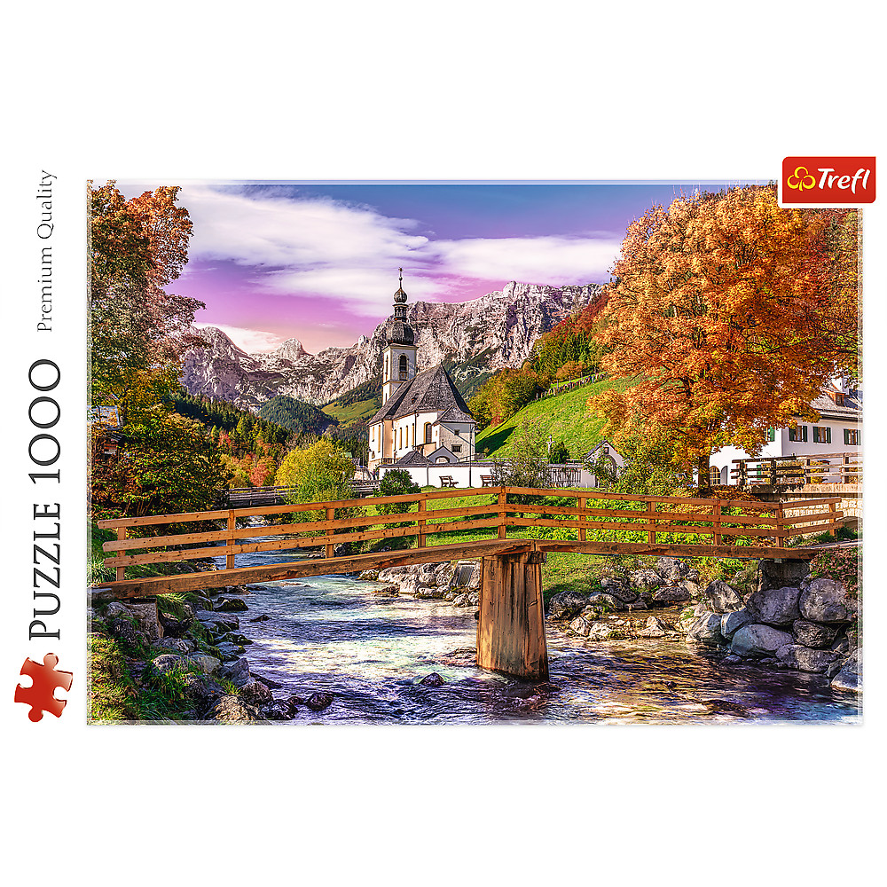 Puzzle - 1000 darab - Ősz Bajorország 10623 Egy 1000 darabból álló puzzle, amely egy lenyűgöző őszi színű bajorországi tájat ábrázol. Összerakás után egy 683x480 mm-es kép jön létre. A termék kiváló minőségű anyagokból készült, speciális, fényvisszaverő kalanderezett papír felhasználásával, ami megkönnyíti az összeszerelést. A terméket Lengyelországban gyártották, és a gyártás során környezetbarát anyagokat használtak fel.