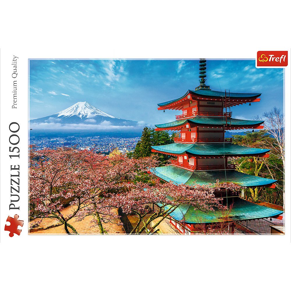 Puzzle - 1500 - Fuji hegy / HUBER Trefl 26132 Egy 1500 darabos puzzle a japán szent hegy, a Fuji látképével. Összerakás után egy 85x58 cm-es kép jön létre. A kiváló minőséget, a színtelítettséget és az összeszerelés biztonságát a környezetbarát anyagok használata biztosítja.