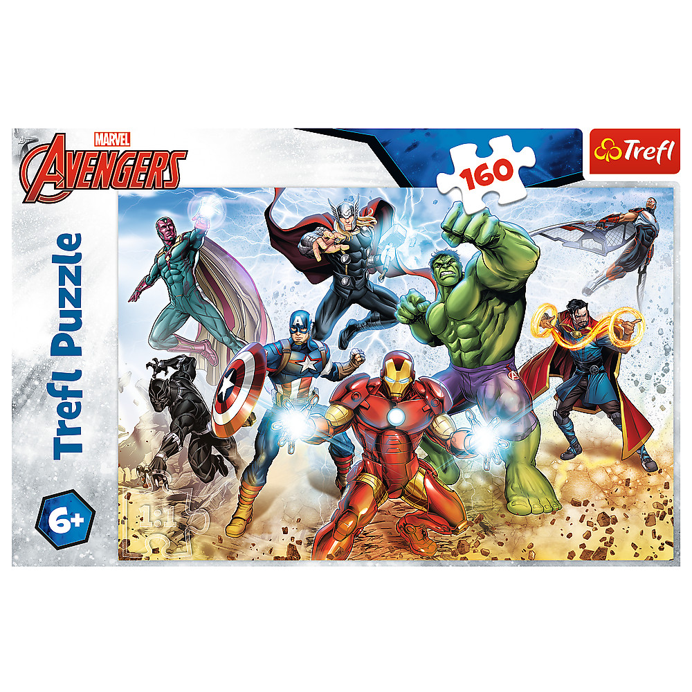 Puzzle - 160 - Készen állsz a világ megmentésére - Disney Marvel A Bosszúállók 15368 Egy 160 darabból álló puzzle, amelyet a Bosszúállók című animációs film minden rajongójának terveztek. A puzzle összerakása után egy 410 x 275 mm méretű kép jön létre. A termék kiváló minőségű anyagokból, speciális, fényvisszaverő, kalanderezett papír felhasználásával készült, ami megkönnyíti az összerakást.