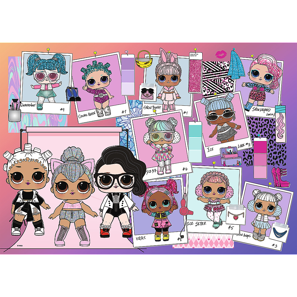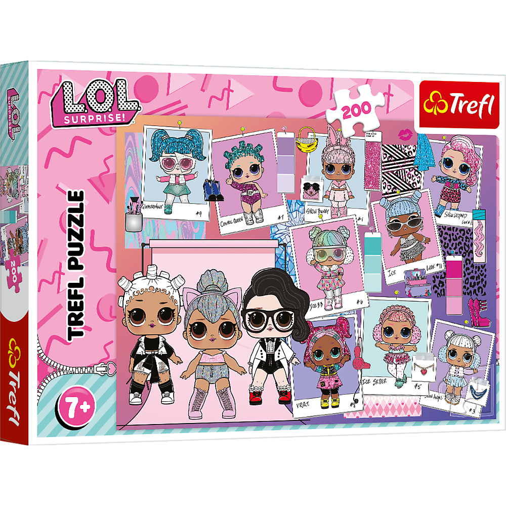 Puzzle - "200" - Édes LOL meglepetésbabák! Trefl 13288 A kedves babák 200 darabos kirakók, melyeket a LOL meglepetésbaba rajongók számára terveztek. Összerakás után egy 48x34 cm-es kép készül. A termék kiváló minőségű anyagokból készült, speciális, fényt visszaverő, kalanderezett papír felhasználásával, ami megkönnyíti az összeszerelést. A terméket Lengyelországban gyártották, és a gyártáshoz környezetbarát anyagokat használtak.