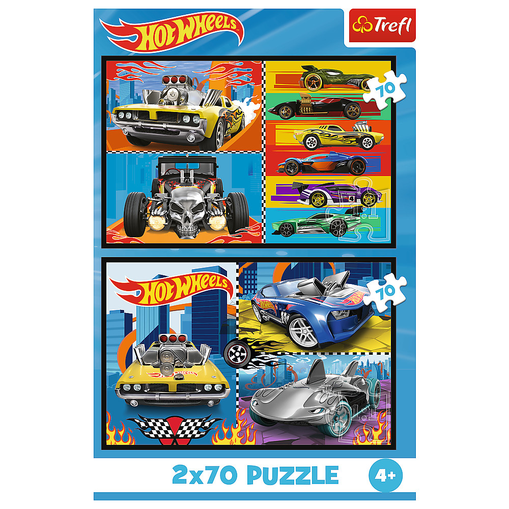 Kirakós játékok - 2x70 darabos - Autók - Hot Wheels Trefl 34442 A 2x70 darabos kirakós játékok két darab 70 darabos kirakós játék egy csomagban! Az összerakásuk még érdekesebbé válik, és több gyermek is részt vehet benne. Az autók kirakós játékok Hot Wheels kisautókkal készült kollázsokat mutatnak be. Minden kirakóval egy 275x180 mm-es képet hozhatsz létre. A termék Lengyelországban készült, környezettudatosan és kiváló minőségű, FSC tanúsítvánnyal rendelkező anyagok felhasználásával.