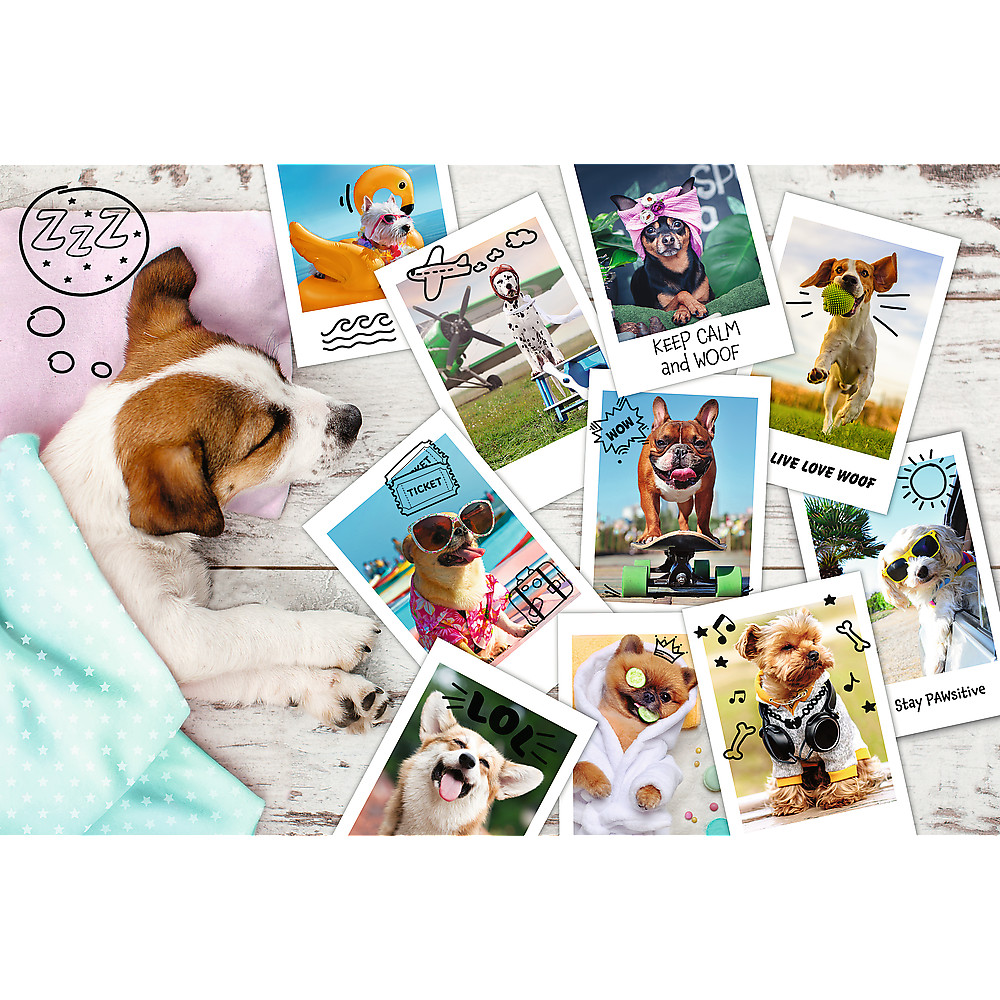 Puzzle - "300" - Fotók a nyaralásról / Trefl 23003 A Fotók a nyaralásról egy 300 darabos kirakó, amely vicces utazási kutyák fotóit ábrázolja. A termék kiváló minőségű anyagokból készült, speciális, fényvisszaverő, kalanderezett papír felhasználásával, ami megkönnyíti az összerakását. A terméket Lengyelországban gyártották, és a gyártás során környezetbarát anyagokat használtak fel.
