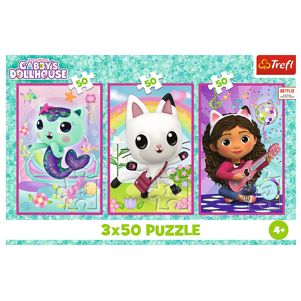 3x50-es puzzle - Ismerd meg Gabbyt és Gabby babaházát Trefl 34876