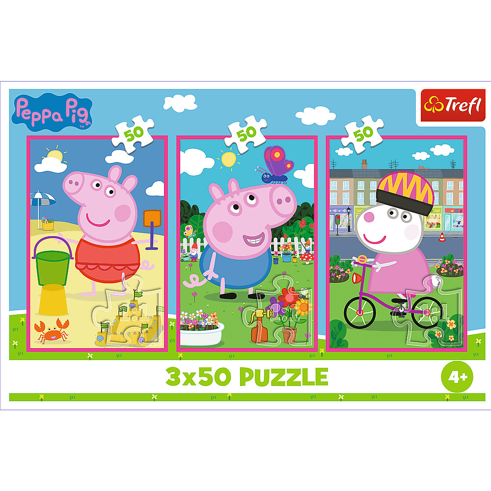 Kirakó - 3x50 - A Barátság Ereje / Peppa PigMix 70% 34877 A 3x50-es kirakó három 50 darabos kirakó egy csomagban! Az összerakás még érdekesebbé válik, és több gyermek is részt vehet benne. A Barátság Ereje egy kirakó, amely a Peppa Pig rajzfilm szereplőit ábrázolja. Minden kirakóval egy 275x180 mm-es képet alkothatsz. A termék Lengyelországban készült, környezettudatosan és kiváló minőségű, FSC tanúsítvánnyal rendelkező anyagok felhasználásával.