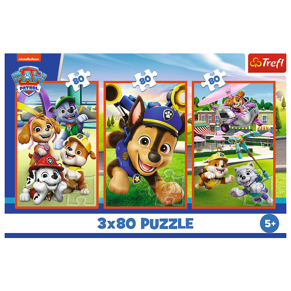 Puzzle - 3x80 - Mancs őrjárat kutyás csomag Trefl 34886 A 3x80 darabos puzzle három 80 darabos kirakó egy csomagban! Az összerakás még érdekesebbé válik, és több gyermek is részt vehet benne. A Mancs őrjárat egy kirakó, amely a Mancs őrjárat rajzfilm mindig tettre kész hőseit ábrázolja. Minden kirakóval egy 275x180 mm-es képet alkothatsz. A termék Lengyelországban készült, környezettudatosan és kiváló minőségű, FSC tanúsítvánnyal rendelkező anyagok felhasználásával.