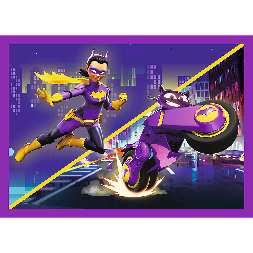 Kirakó - 4 az 1-ben - Ismerd meg a Batwheelst - Warner Batwheels 34658 A Ismerd meg a Batwheelst 4 független kirakó gyerekeknek, melyeket a DC univerzum ikonikus járműveiről ismert hősök kalandjainak fiatal rajongóinak terveztek. A kirakó összeállítása után 4 kép jön létre, melyek közül a legnagyobb 285x205 mm. A változatos elemszám lehetővé teszi mind a fiatalabb, mind a kicsit idősebb gyermekek számára a játékot.
