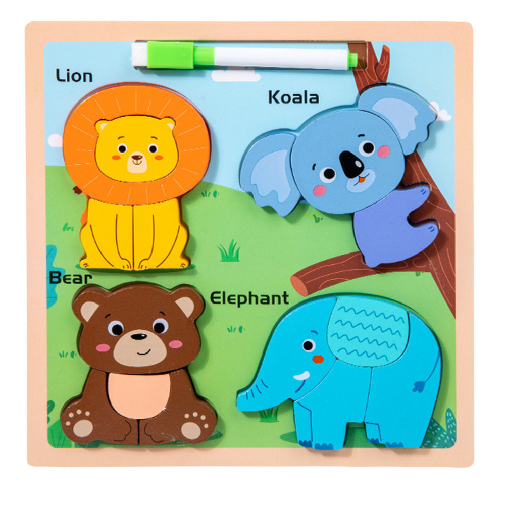 Puzzle tábla 2 az 1-ben fából készült oktatási vadállatok jelölő