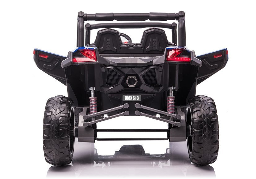 UTV-MX Buggy akkumulátoros autó  Gyermeked arról álmodik, hogy már kiskorától autót vezethet? Lehetővé teheted ezt egy terepjáró változatú akkumulátoros autóval. Hagyd, hogy a gyermek érezze a felelősséget és a függetlenséget, ami a számára elérhetetlen felszerelés használatából fakad. Ne feledd, hogy a masszívan elkészített felszerelés az alap – válaszd hát félelem nélkül az XMX613-at.  Az XMX613 autót a legapróbb részletekre is odafigyelve tervezték, ami pozitív hatással van a fiatal raliversenyzőre. A tartós és masszív szerkezet, valamint a kiváló minőségű anyagok kombinációja hosszú éveken át tartó nagyszerű szórakozást és sérülésállóságot biztosít. A modell vonzerejét növelik a nyitható ajtók és a lengéscsillapítók, amelyekre szerelték, aminek köszönhetően az egyenetlen és göröngyös terepen való vezetés sokkal kellemesebb és kalandosabb lesz. Ez az akkumulátoros gyermekautó biztosan megfelel a fiatal autórajongók elvárásainak. Miért? Érdemes odafigyelni a valódi dizájnjára, a 4x60 W-os motorokra, a háromsebességes automata sebességváltóra, valamint az első és hátsó lámpákra. Mindenképpen érdemes figyelmet fordítani a modell lenyűgöző 3-8 km/h sebességére. Az akkumulátoros autó nem jelenti azt, hogy gyermeke szabadon vezetheti – a távirányítóval mindig szabályozhatja a sebességét. Ez a modell 3 éves kortól gyermekek számára készült, de szülői felügyelet mellett a fiatalabb vezetők is használhatják. A terepjáró CE-tanúsítvánnyal rendelkezik, amely biztosítja a biztonságos használatot. Dobja fel a családi sétákat egy fiatal autórajongóval a volánnál. Csomag méretei: 150 x 82 x 46 cm Súly csomagolással: 42 kg Max. terhelhetőség - 50 kg