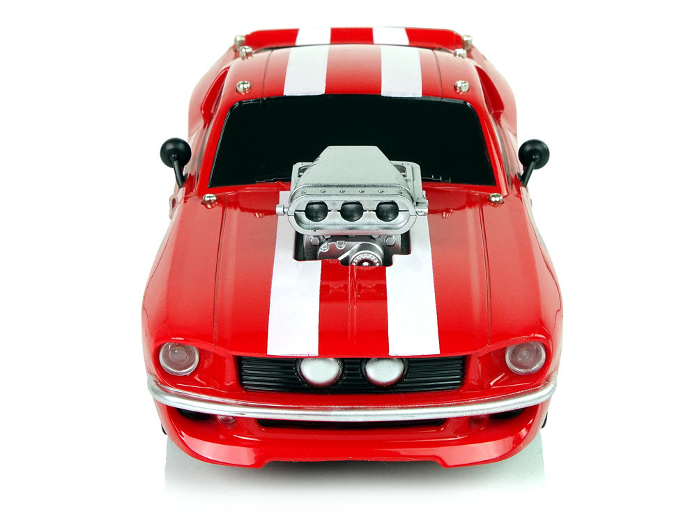 Távirányítású sportautó 1:16 piros-fehér csíkos pilóta Egy izgalmas utazás egy klasszikus modellel! Mostantól egy kisebb verzió is otthonodban lehet! A móka segít fejleszteni gyermeked kézügyességét, mozgékonyságát és ravaszságát, ráadásul javítja a kézfunkciókat, ami minden bizonnyal hasznos lesz az iskolában az írásórákon. A játék nemcsak a legkisebb gyerekeknek, hanem a nagyobbaknak is tetszeni fog. Az autó könnyű és robusztus felépítésű, a sportos kialakítás a tetején lévő két fehér csíkkal és az autó motorháztetőjén található ezüst kompresszorral fokozza a hatást. A gumiabroncsok garantálják a tapadást a talajon az autó kormányzása közben. A mellékelt távirányító lehetővé teszi a kis autómodell kormányzását, két külön gombbal rendelkezik az előre/hátra és az oldalirányú vezetéshez. A modell 1:16 méretarányban készült, a matricák pedig a sportos célt jelzik. Minden részlet és az áramvonalas forma el fogja kápráztatni az autórajongót. A készlet elemeinek méretei:- autó: 26 cm x 10 cm x 7 cm- távirányító: 11 cm x 9 cm x 4 cmCsomag méretei: 38 cm x 16 cm x 14 cm A kormányozható játék CE minősítéssel rendelkezik, ami mindenekelőtt a termék magas minőségét és biztonságos használatát bizonyítja. A járműmodell 4,8 V-os 700 mAh-s akkumulátorral rendelkezik, a távirányító (két darab) pedig 1,5 V-os AA elemekkel működik, amelyek nem tartozékok. 6 év feletti gyermekek számára alkalmas.