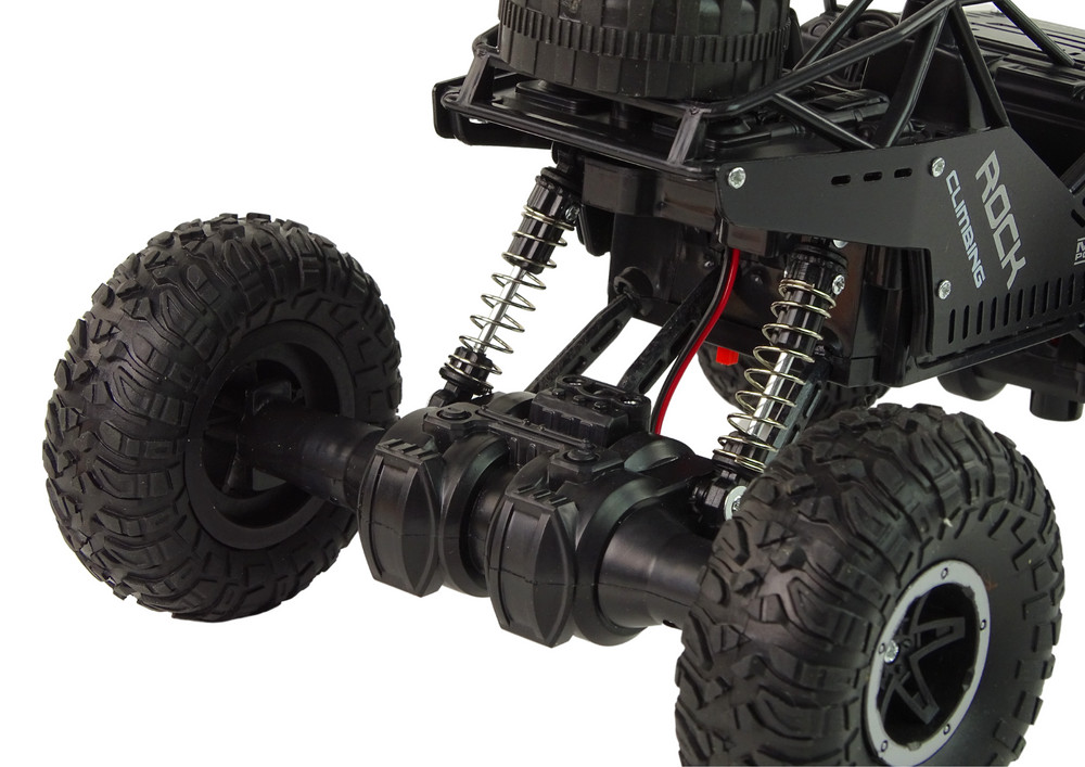 RC Rover 1:16 autó fekete távirányítású jármű   Ez egy valódi terepjáró kisebb másolata, így tökéletes méretű a különféle terepviszonyok közötti játékhoz. Az autó elegáns fekete színnel rendelkezik, ami agresszív és stílusos megjelenést kölcsönöz neki, emlékeztetve a nehéz körülmények között használt terepjárókra. A nagy fekete gumikerekek rugalmas gumi anyagból készültek, ami kiváló tapadást biztosít, és lehetővé teszi az egyenetlen terep leküzdését. A kerekeknél látható rugók nemcsak realizmust kölcsönöznek, hanem jobb stabilizációt és lengéscsillapítást is biztosítanak egyenetlen terepen, ami elengedhetetlen a terepjárók esetében. A jármű tetején található egy pótkerék, ami hitelességet kölcsönöz, és az autót készen áll a nehéz terepen való kalandokra. Jármű belső tere: A jármű belső tere a karosszéria ablakon keresztül látható, ami további realizmust kölcsönöz. A belső tér részletesen kidolgozott, és üléseket, kormánykereket és egyéb elemeket is tartalmazhat. A készlet tartalmaz egy távirányítót, amely lehetővé teszi a jármű pontos irányítását. A játék képes előre, hátra mozogni, valamint jobbra és balra fordulni, ami változatos és izgalmas játékot tesz lehetővé. Ez az RC játék nemcsak rengeteg szórakozást kínál, hanem megtanítja a távirányítást és fejleszti a kéz-szem koordinációt a gyerekeknél. Ideális ajándék a terepjárók szerelmeseinek és a távirányítású járművek rajongóinak. Műszaki adatok: - 1:16 méretarány - 1200 mAh 3,7 V-os akkumulátor - járműhasználati idő: kb. 40 perc - távirányító hatótávolsága: akár 30 m - akkumulátor töltési ideje: kb. 3 óra. - 4x4 meghajtás - akkumulátor töltése: USB kábel   A készlet tartalma: - RC jármű 1:16 - távirányító - 1200mAh akkumulátor - USB kábel - eredeti csomagolás   Jármű méretei: 27cm x 16cm x 19cm   Távirányító méretei: 18cm x 15cm x 6cm   A csomag mérete: 39cm x 21cm x 20cm   Az autót a készletben található elem, míg a távirányítót két 1,5 AA elem táplálja, amelyek nem részei a készletnek.   CE tanúsítvánnyal rendelkezik és megfelel az EN71 szabványnak. A játék 6 év feletti gyermekek számára készült.