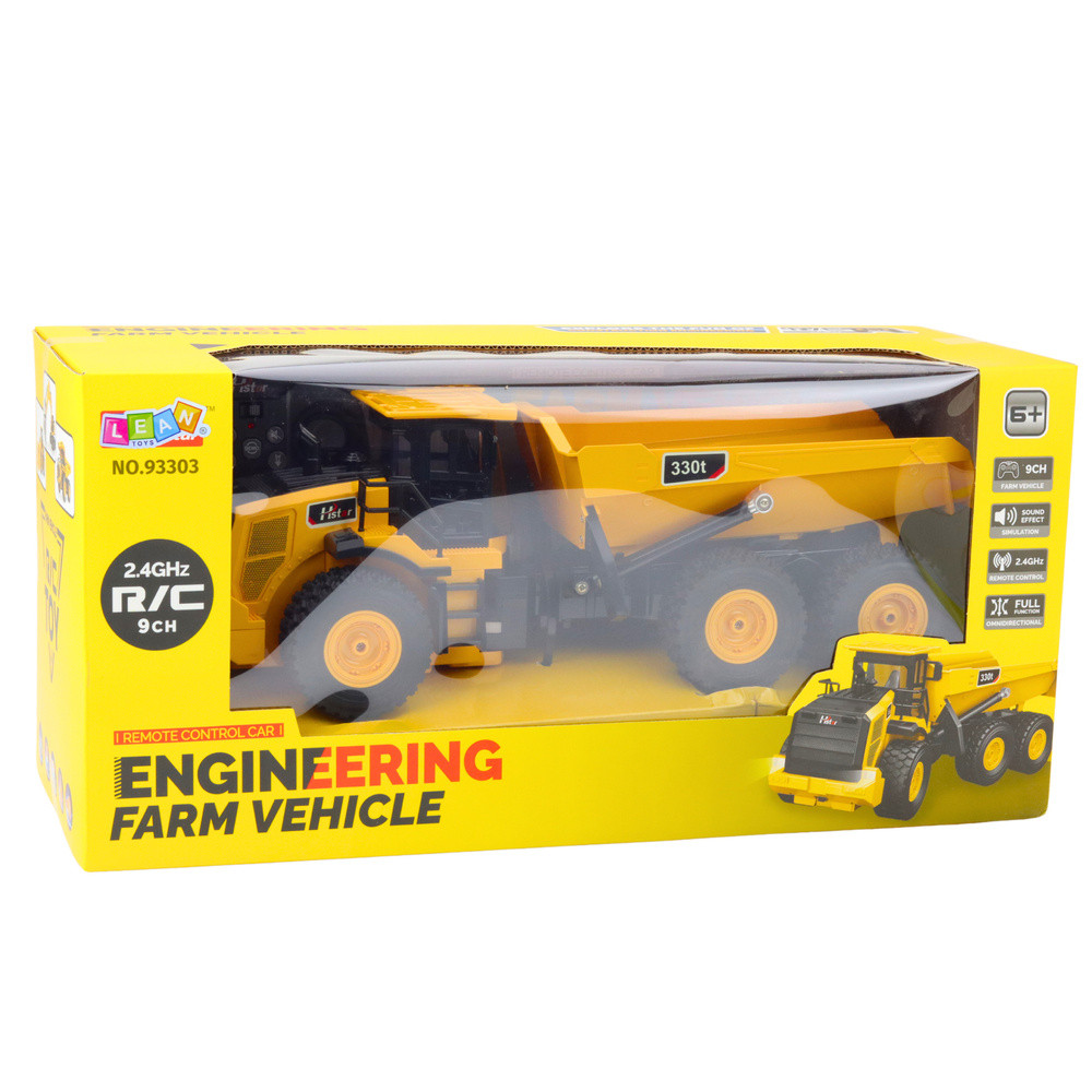 Távirányítású RC dömper szállító hangokkal 9 csatornás 2.4G sárga