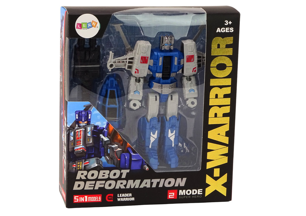 Robot-Helikopter 2in1 Átalakulás X-Warrior Kék Egy helikopterré alakuló robot egy lenyűgöző játék, amely minden gyermeket el fog kápráztatni. A robot masszív, tartós anyagokból készült, ami hosszú távú használatot és ellenállást garantál az intenzív játékkal szemben. A robot teljes szerkezete kék színű, ami modern és vonzó megjelenést kölcsönöz neki. A robot helikopterré alakítása rendkívül egyszerű és intuitív, így gyermeke könnyen megbirkózik ezzel a feladattal. Az átalakulási folyamatot úgy tervezték, hogy biztonságos legyen, és fejlessze a legkisebb gyermekek kézügyességét. A mozgó alkatrészek segítségével a gyermek fejleszti a kéz-szem koordinációt és a mozgás pontosságát. Ezenkívül a robot átalakulása serkenti a gyermekek képzeletét, arra ösztönzi őket, hogy új játékhelyzeteket találjanak ki és fejlesszék a kreativitásukat. A robot helikopterré alakításának képessége dupla szórakozást nyújt, és a játék soha nem unalmas. Tökéletes választás minden fiatal robotika- és járműrajongó számára, amely nemcsak szórakozást, hanem értékes tanulást és fejlődést is kínál a játékon keresztül. A robot méretei: 17,5cm x 15cm x 4,5cm A csomag mérete: 25cm x 22cm x 7cm CE tanúsítvánnyal rendelkezik és megfelel az EN71 szabványnak. 3 év feletti gyermekek számára készült.