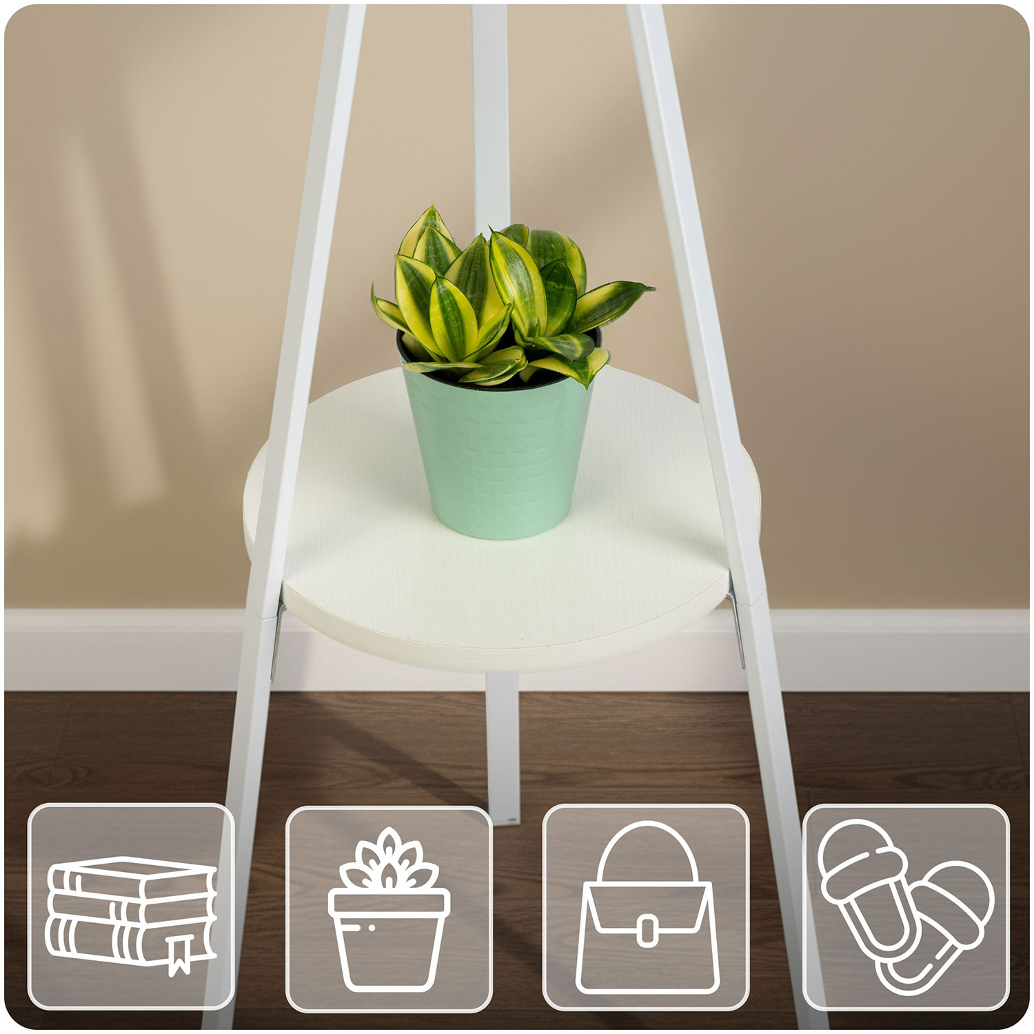 Ez a kabáttartó polcot tartalmaz táskák vagy kiegészítők számára.