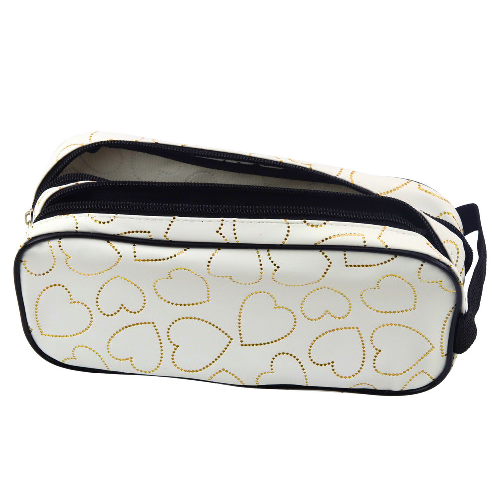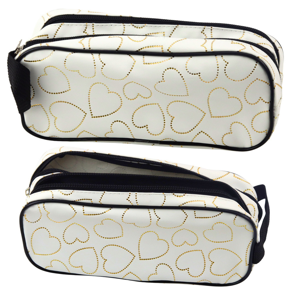 Iskolai irodai tolltartó, két rekeszes, arany szívek, fehér, 23,5x10 cm