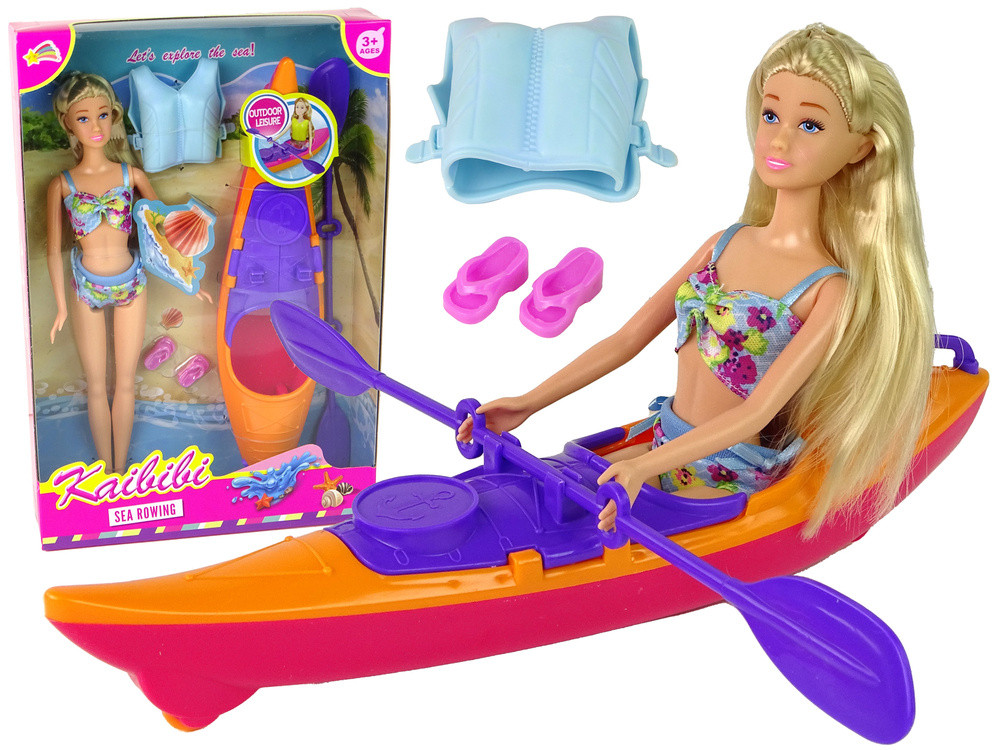 Kajak kiegészítők narancssárga színben Ez a készlet nemcsak rengeteg szórakozást nyújt, hanem végtelen történeteket is mesél a vízen való utazásról. Belül egy csodálatos babát találsz, aki készen áll bármilyen vízi kirándulásra. Aranyos, színes fürdőruhája nyári hangulatot áraszt, szőke haja pedig csillog a napon. Rózsaszín papucsai bájt kölcsönöznek az egész öltözéknek. A készlet kulcseleme egy narancssárga kajak, amely biztosan magára vonzza a figyelmet. Mozgatható elemekkel és kerekekkel felszerelve nagyszerű élményt nyújt új területek felfedezésében. Zárhatósága emellett biztonságos és vonzó szórakozást biztosít. A szórakozás még realisztikusabbá válik a kék mentőmellénynek köszönhetően, amely biztonságot nyújt a tengeri kalandok során. A lila evező lehetővé teszi a kajak mozgásba hozását. A készlet teljes egészében tartós műanyagból készült, ami nemcsak a biztonságot, hanem a tartósságot is garantálja. A baba méretei: 29 cm x 29 cm x 7 cm, a kajak méretei pedig: 30 cm x 4 cm x 7 cm, így tökéletes társ mind beltéri, mind kültéri játékhoz. Ez a játék nemcsak a képzeletet fejleszti, hanem izgalmas és valósághű dimenziót is ad a gyermekek kalandjainak!   A készlet tartalma: - baba - kajak - evező - mellény - papucs   A baba méretei: 29 cm x 29 cm x 7 cm   Kajak méretei: 30 cm x 4 cm x 7 cm   A csomag mérete: 32,5 cm x 22 cm x 6 cm   CE tanúsítvánnyal rendelkezik és megfelel az EN71 szabványnak. A játék 3 év feletti gyermekek számára készült.
