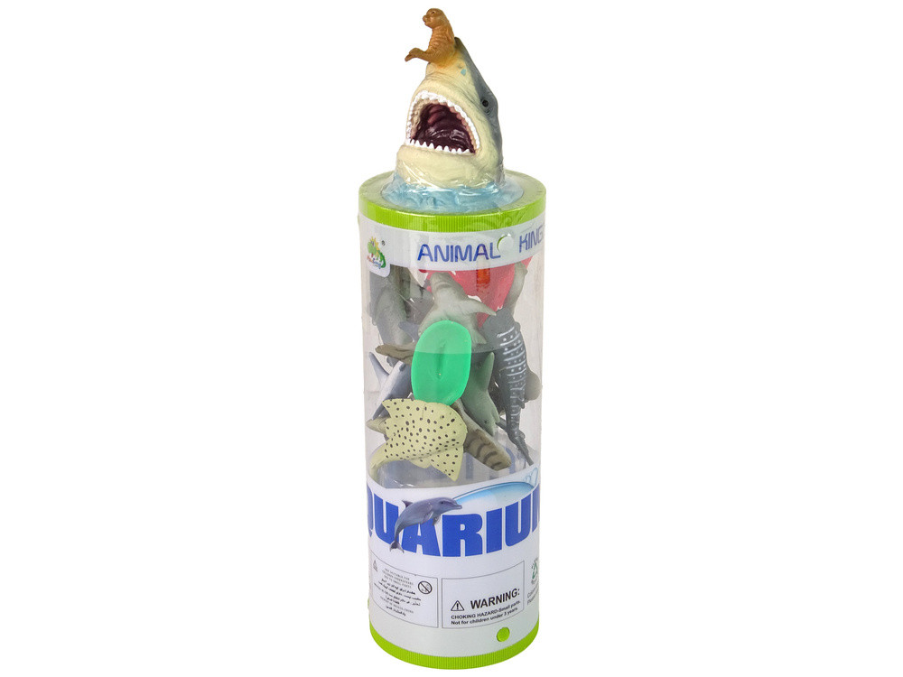 Tengeri állatok, cápák figurái, 12 db-os készlet, kiegészítők, tubusban