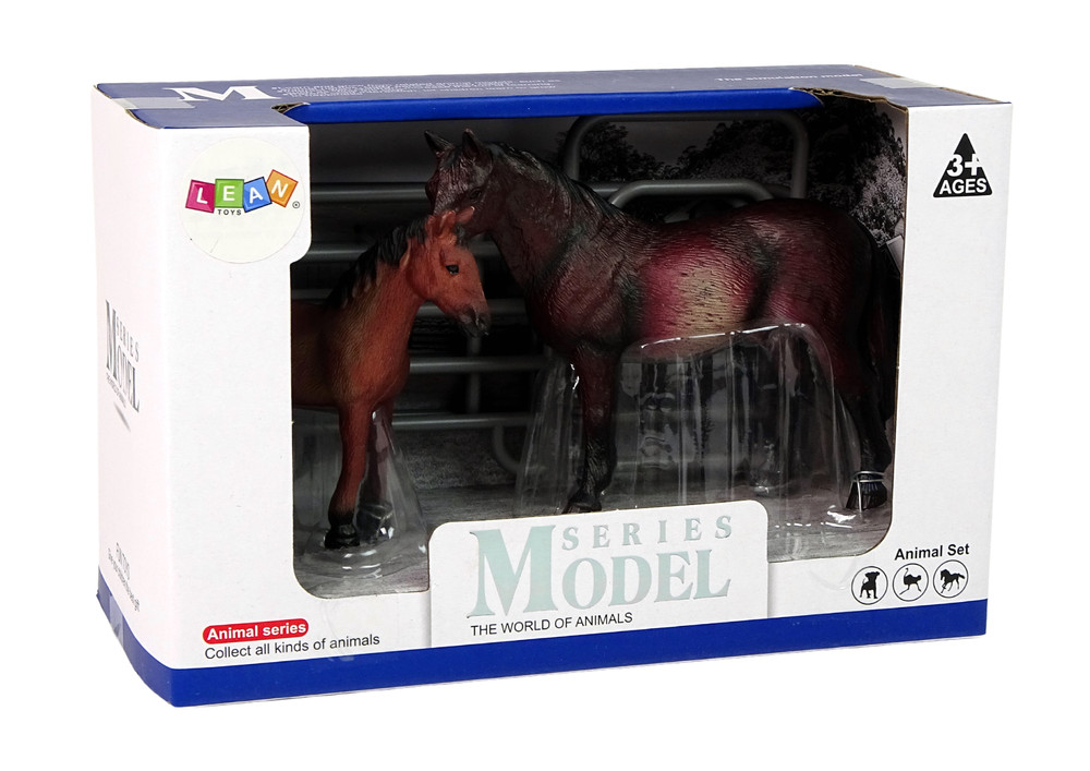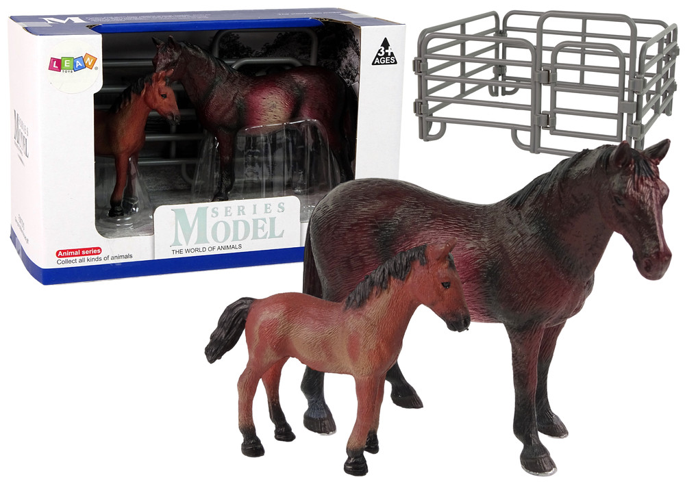 2 darabos figurakészlet Ló csikóval és tollal   A legnagyobb odafigyeléssel, csodálatosan kidolgozott lófigurák minden kis gyűjtő gyűjteményét bővítik. A modellek méretei ideálisak a kis kezekhez, így alkalmanként gyakorolhatják a fogást és a precíziót. Minden figura gondosan műanyagból készült és festett, így hűen ábrázolja az állat valódi megjelenését. A figurák lehetővé teszik minden gyermek számára, hogy saját farmot alkosson a szobájában, és különböző játékhelyzeteket teremtsen. A lovak imádnivalóak, és minden gyermeket elragadtatnak.     Készlet elemei: - Felnőtt ló - Csikó - A nyitható bejárattal rendelkező kifutó elemei.     A figurák magassága: - Felnőtt ló: 13 cm x 11 cm x 4 cm - Csikó: kb. 11 cm x 9 cm x 3 cm A doboz méretei: 22 cm x 14 cm x 10 cm     A játékok 3 év feletti gyermekek számára alkalmasak. A figurák CE tanúsítvánnyal rendelkeznek és megfelelnek az EN 71 szabványnak. Kartondobozban érkeznek, így ideális ajándékozásra.
