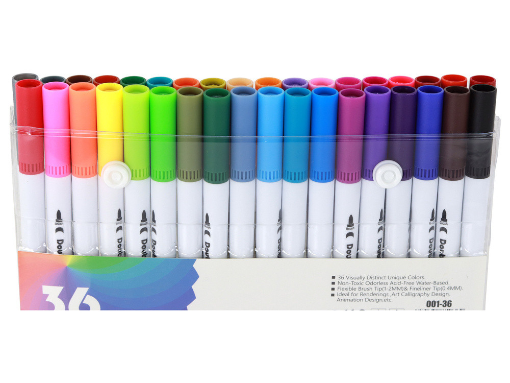 36 db többszínű kétoldalas marker készlet egy rendezőben